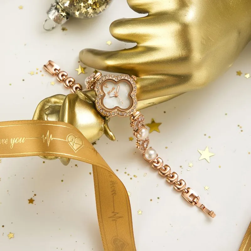 Jbaili Кварцевый механизм металлический ремешок женские часы золотой циферблат