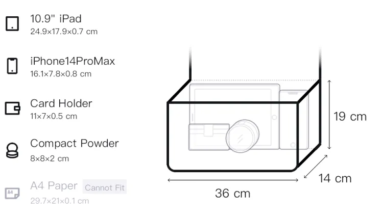 Тубы: Длина 48 см, Ширина 18 см, Высота 25 см. Трубы: Длина (размер в длину) 36 см, Ширина 14 см, Рекомендуемая высота 19 см