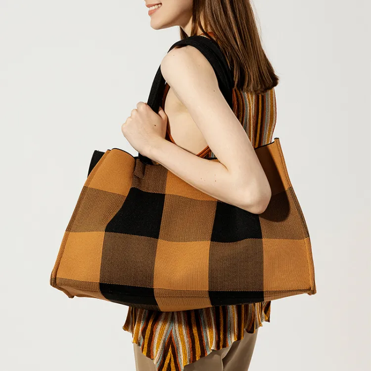 JC DAMO Экологичный Пряжа Большой Квадрат Классический Тоут Сумка Плечевая Сумка Женская Красный Оранжевый Черный CAMEL Синий Зеленый