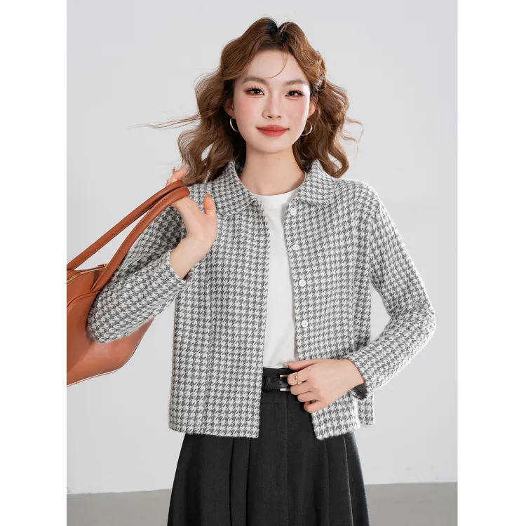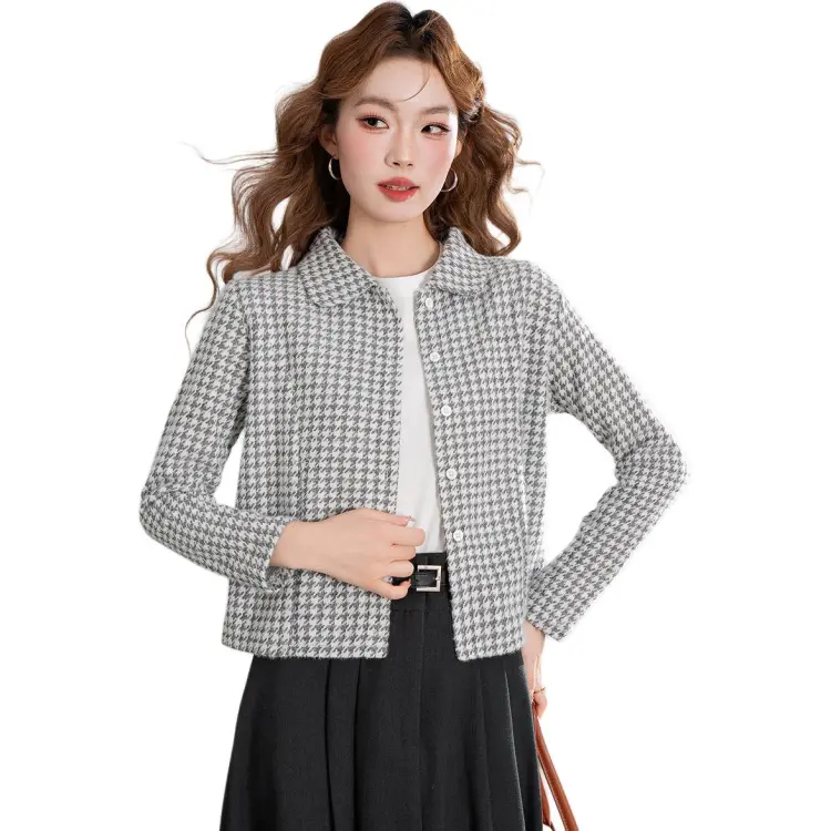 JEANSWEST Женское короткое пальто в узоре гусиная лапка
