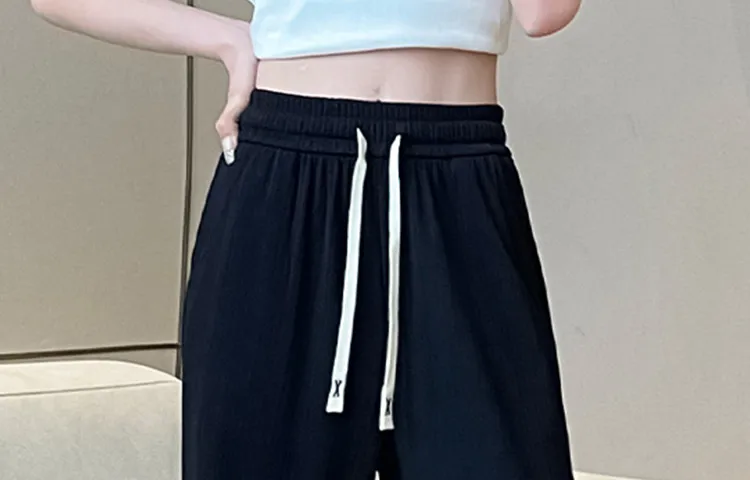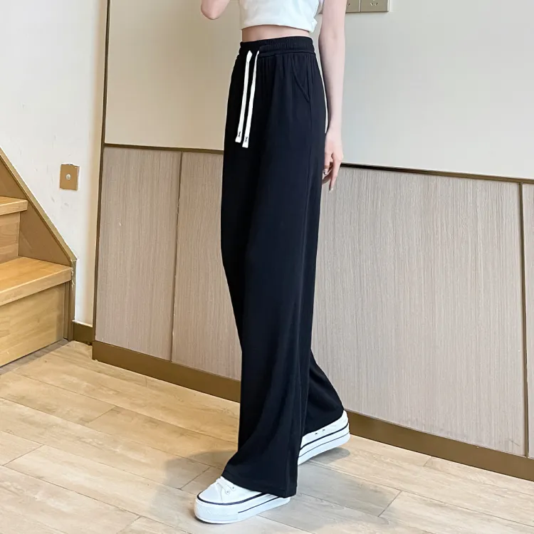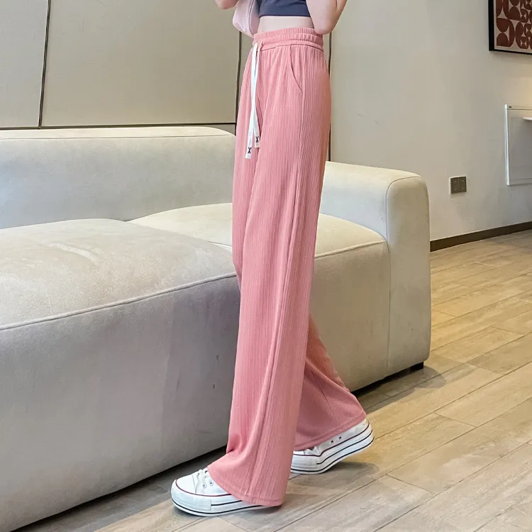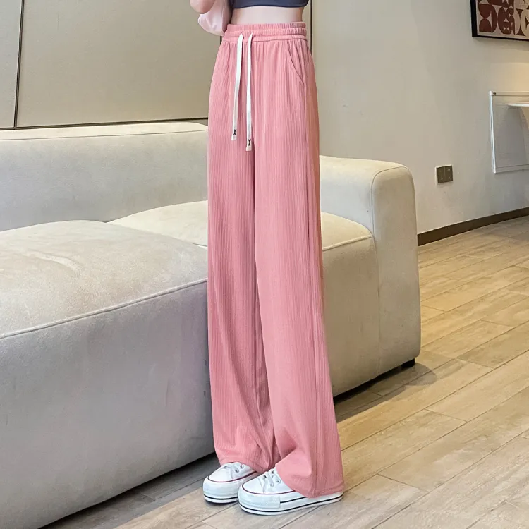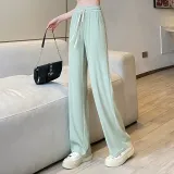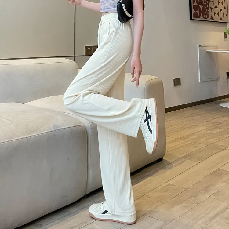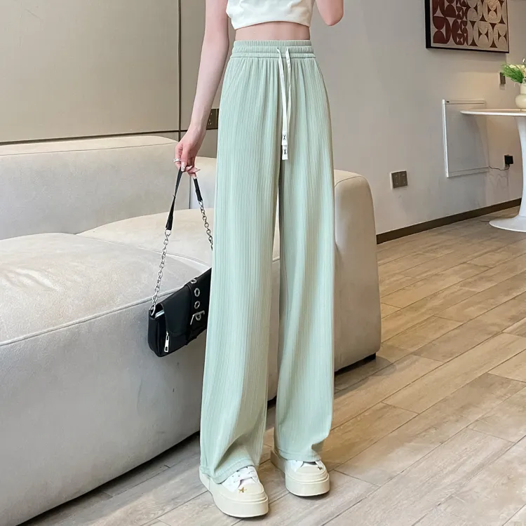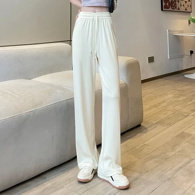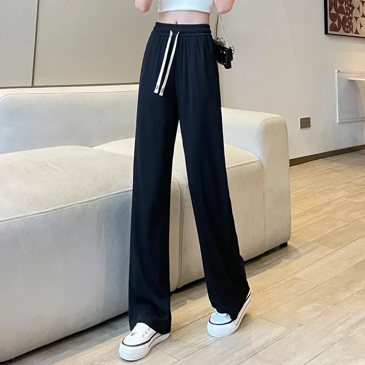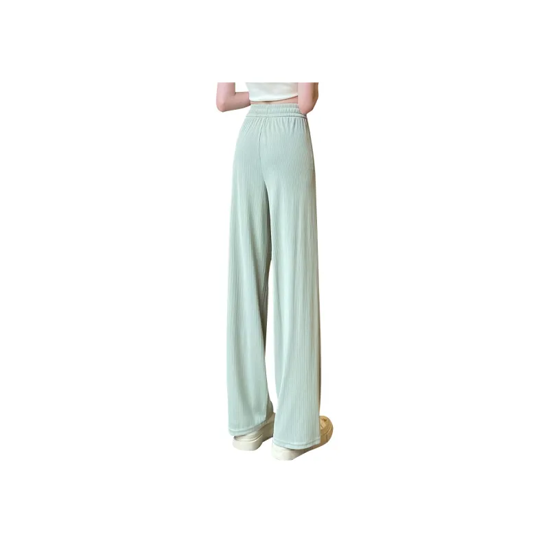 JEANSWEST Модный Универсальный Тонкий Микро Эластичный Удобный Высокая Талия Широкие Брюки Драпированные Ледяной Шелк Летний Женские