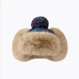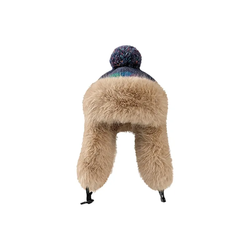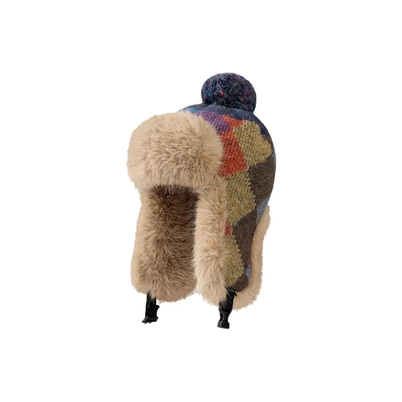 Стиль:Темно-синий/Бежевый Этнический стиль/Клетка Шапка-ушанка
