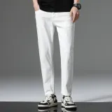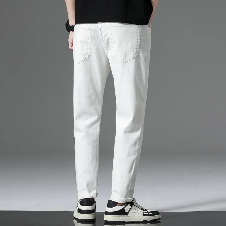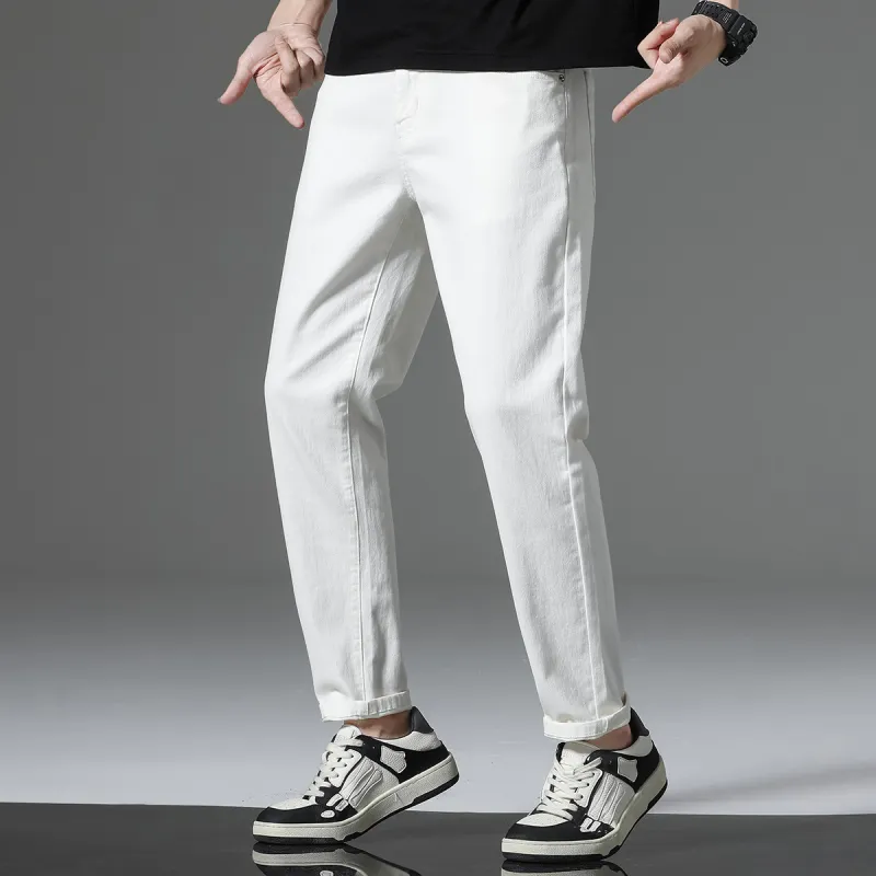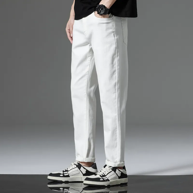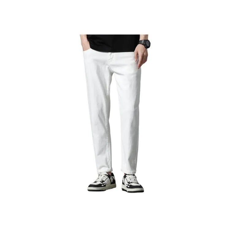 JEANSWEST Универсальный Однотонный Прямой крой Удобный Тонкий Зауженные брюки Лето Мужской Белый