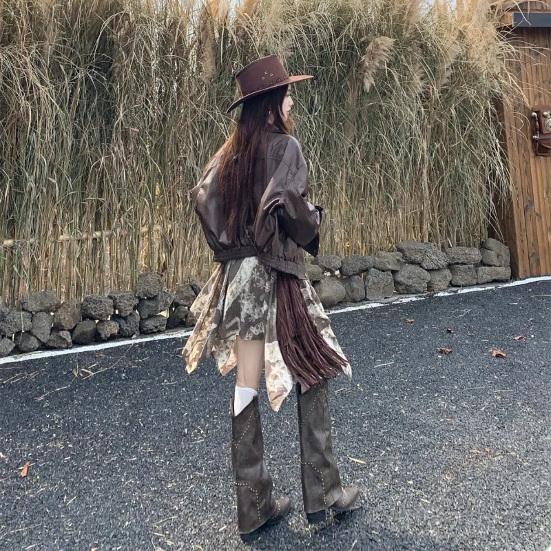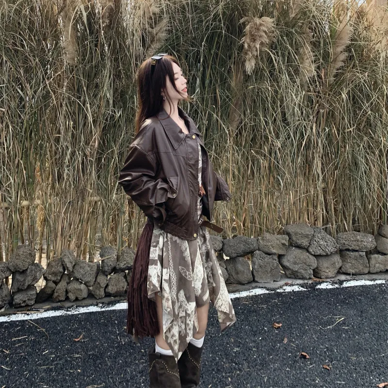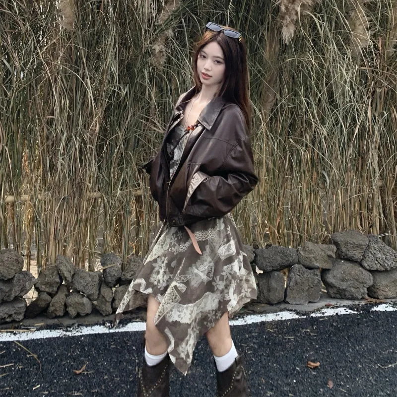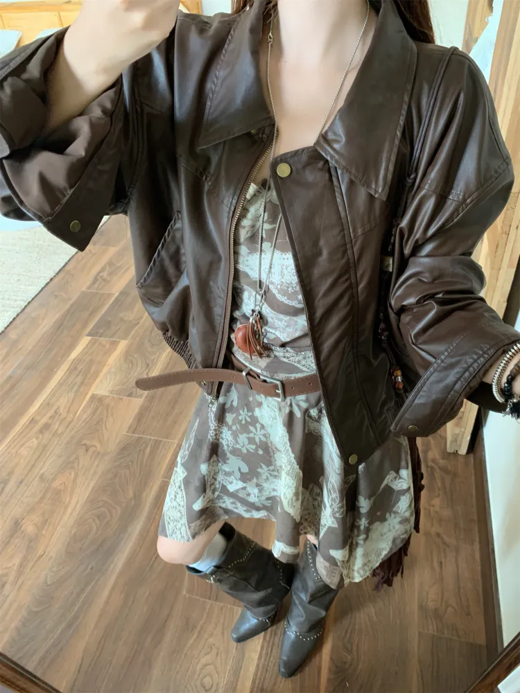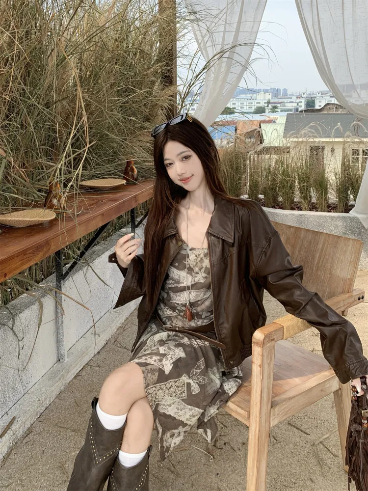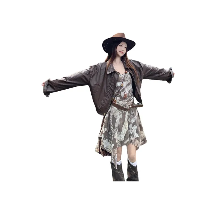 Цвет:Кожаная куртка + платье