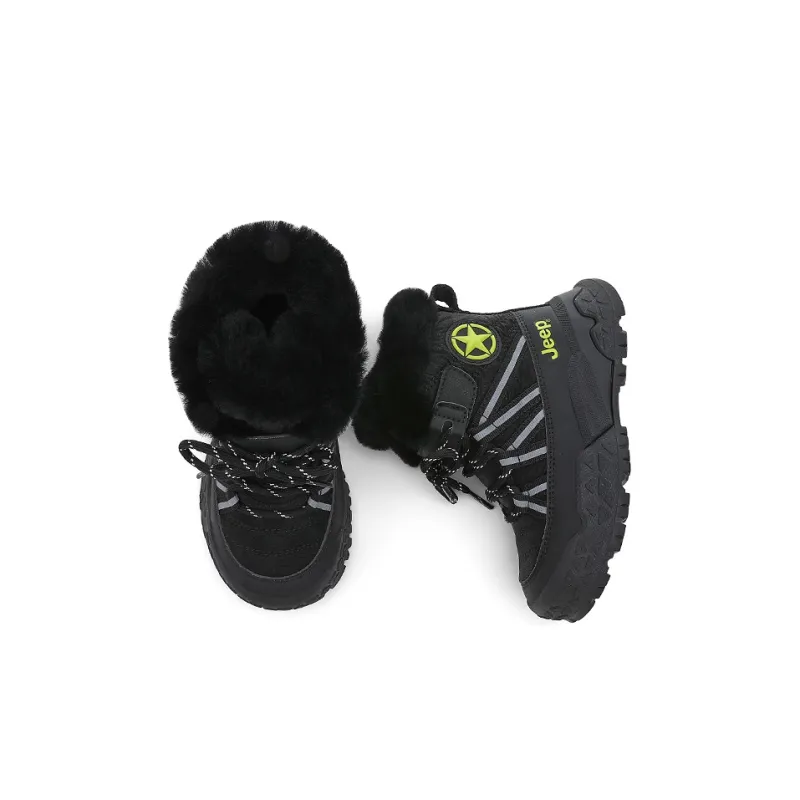 Jeep Anti KICK Износостойкий Дышащий Термический Высокий Топ Снежные ботинки Звездообразующий черный Детский