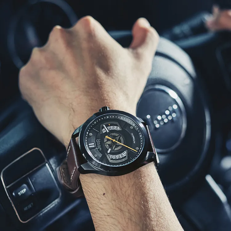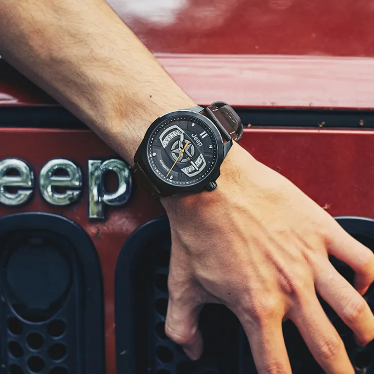 Jeep Grand Cherokee Collection Часы Автоматический Механический Механизм Смола Натуральная Кожа Ремешок 44 мм