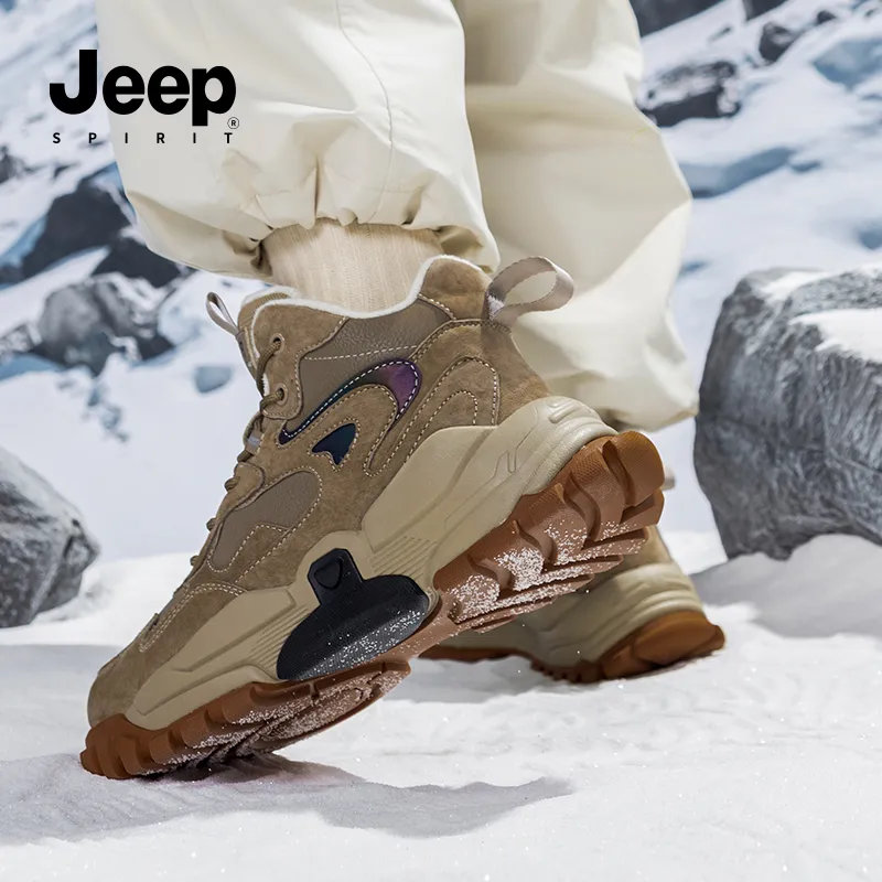 JEEP SPIRIT Тонкий флис Утепленная обувь Зимний Мужская обувь Флис с подкладкой MID Топ Короткий Сноубутсы Мужской Песчаник