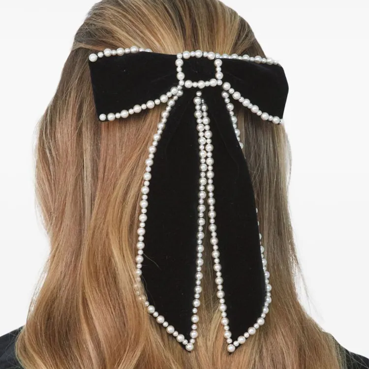 Jennifer Behr Велюр Бархат Искусственный жемчуг Заколки для волос Женские Черный