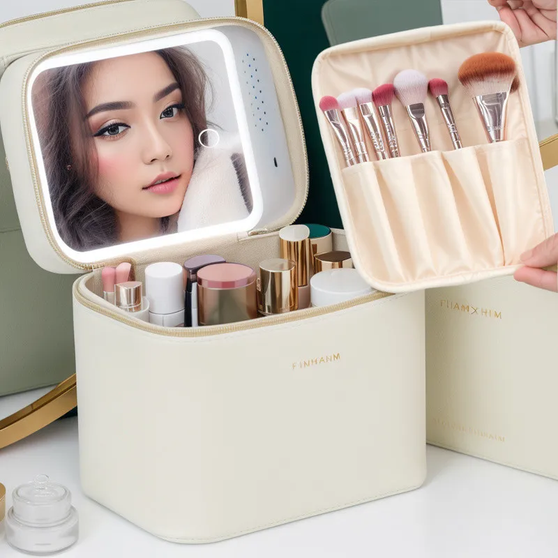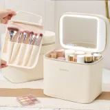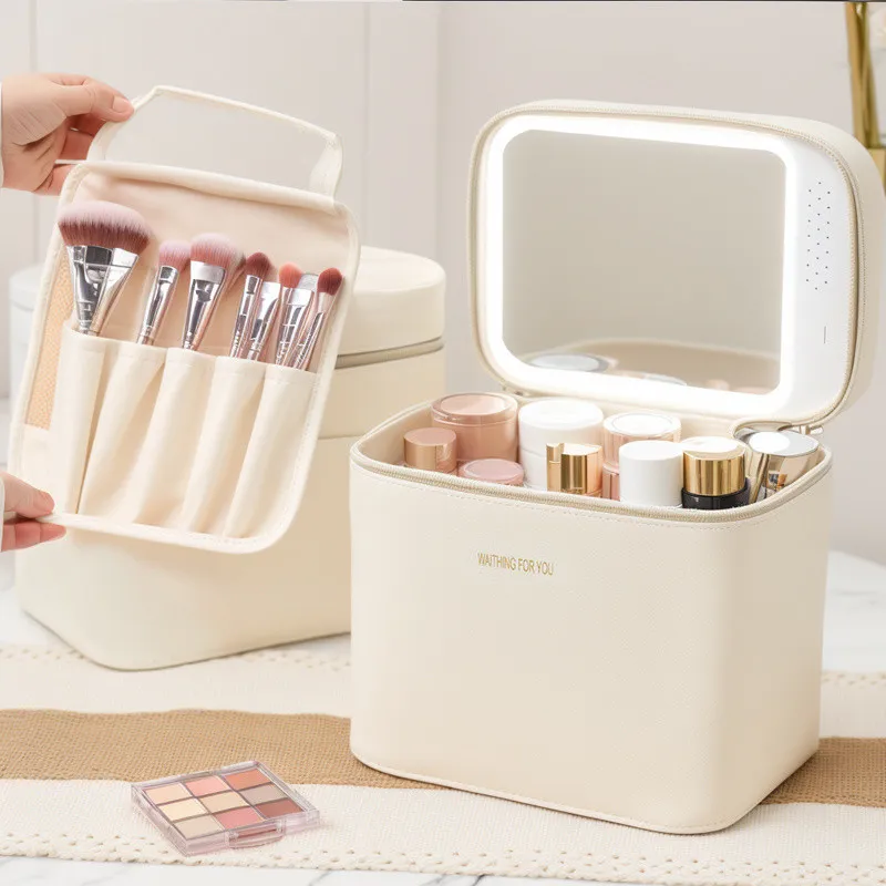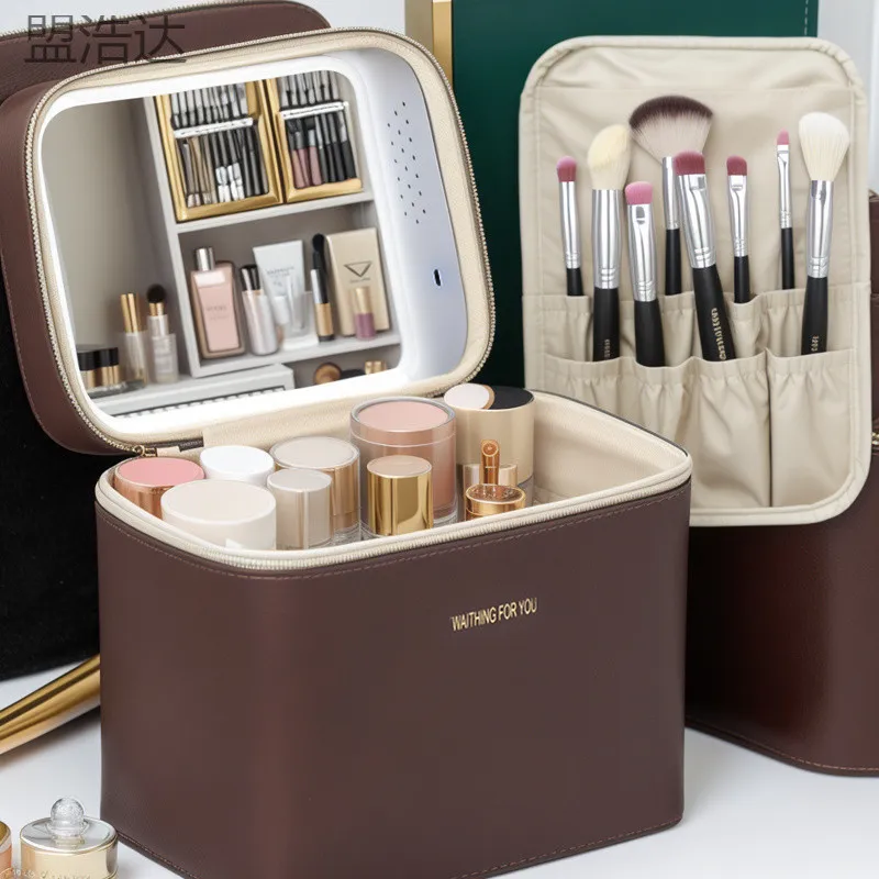 Ji Shengrui Косметичка с Зеркалом и LED Светом Большая Емкость для Хранения Косметики Портативная Коробка для Хранения