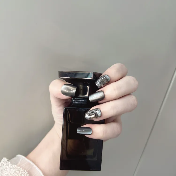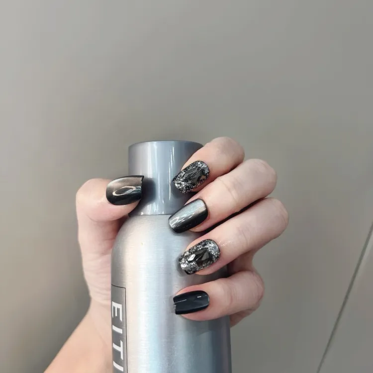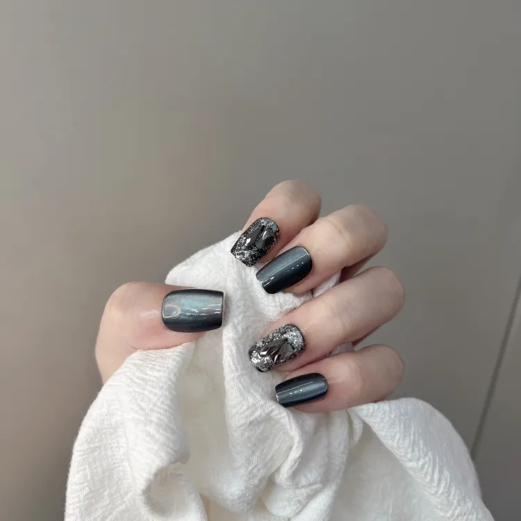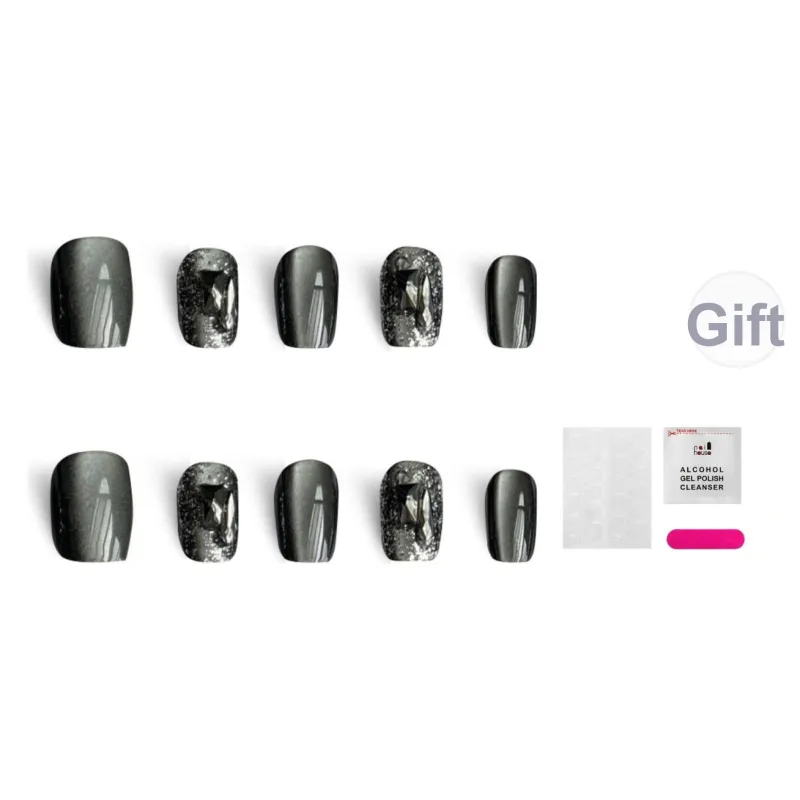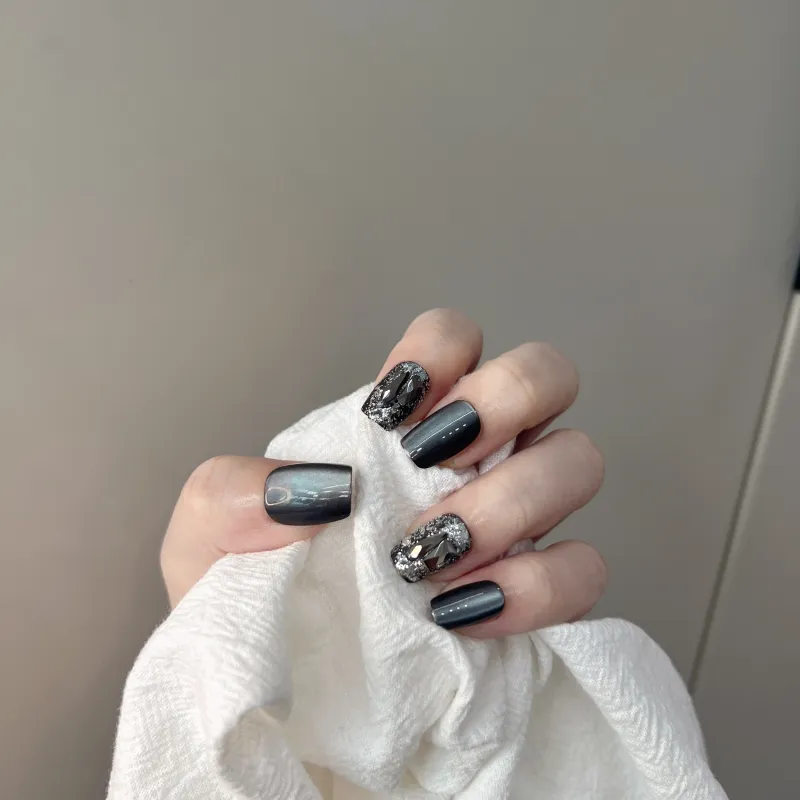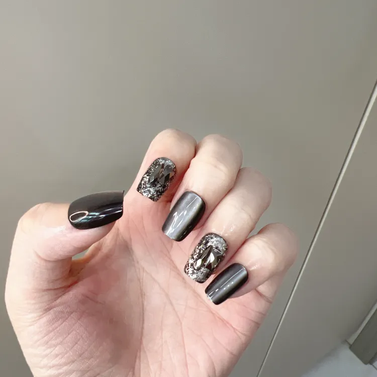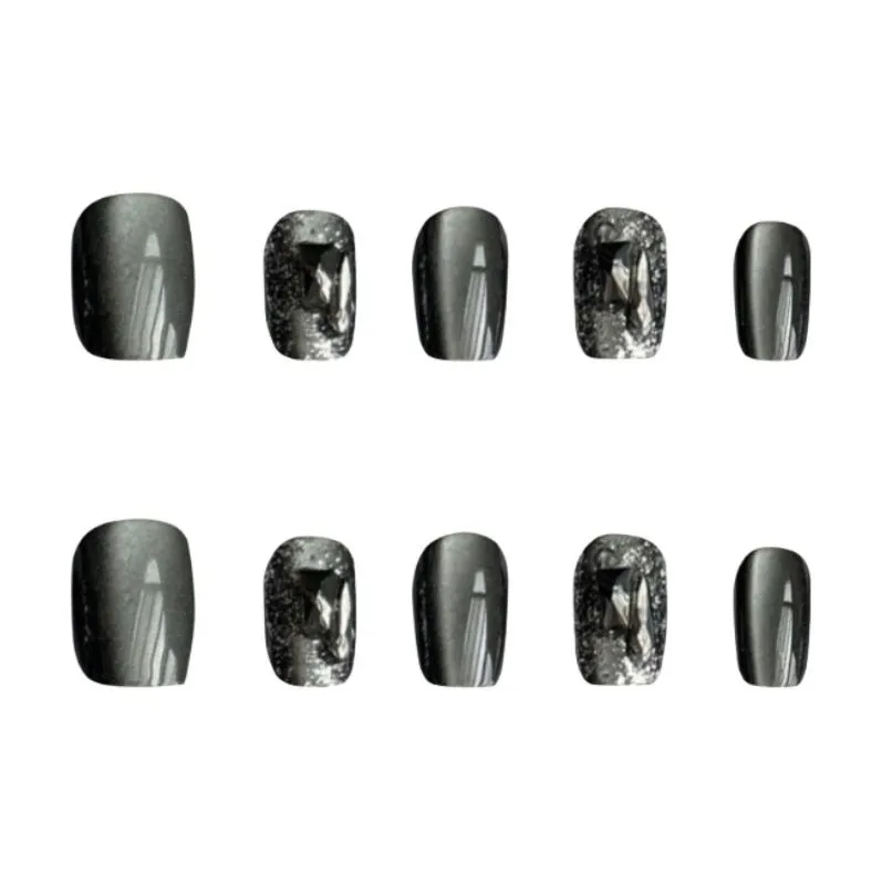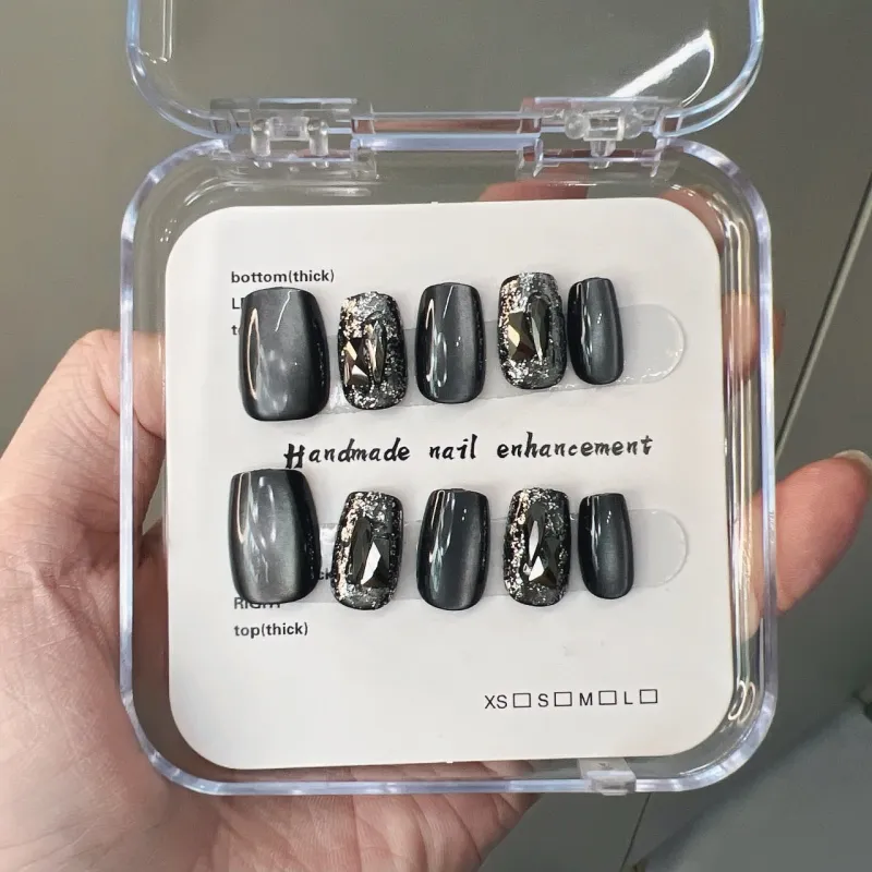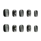 JIABITU Черный Рудный False Nail Короткий LADDER Смешанный цвет Smudge Кошачий глаз 14mm