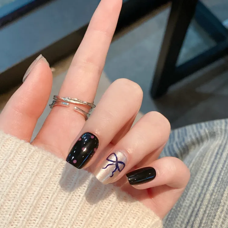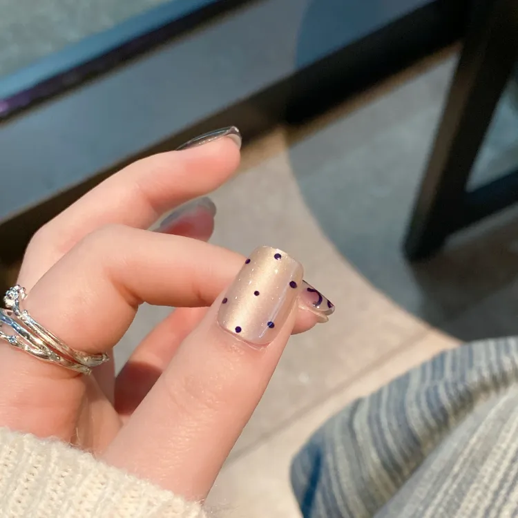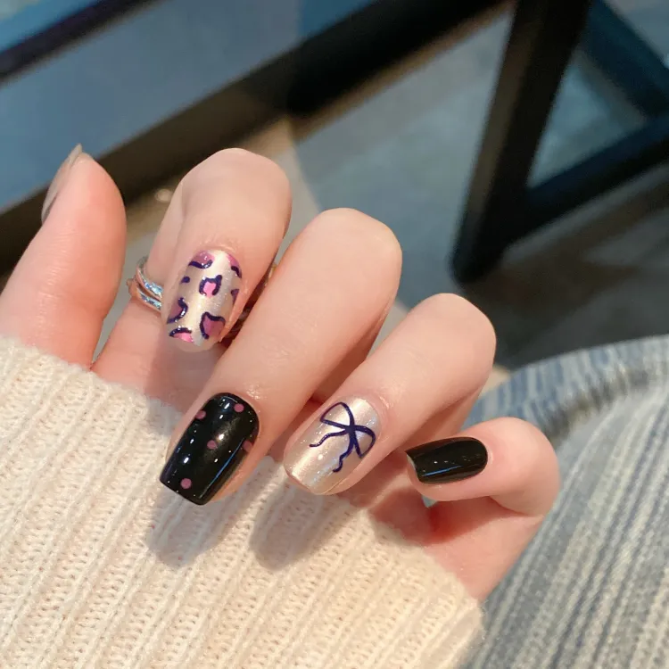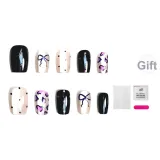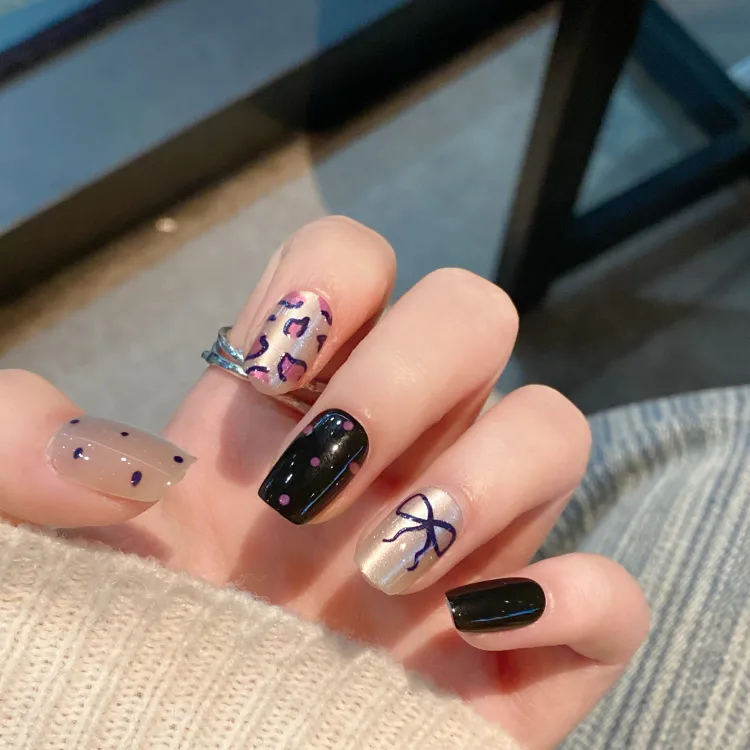 JIABITU Мягкий Фиолетовый Леопардовый Принт False Nail Короткий LADDER Однотонный Smudge Новый Китайский Стиль