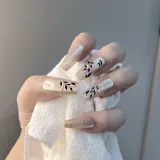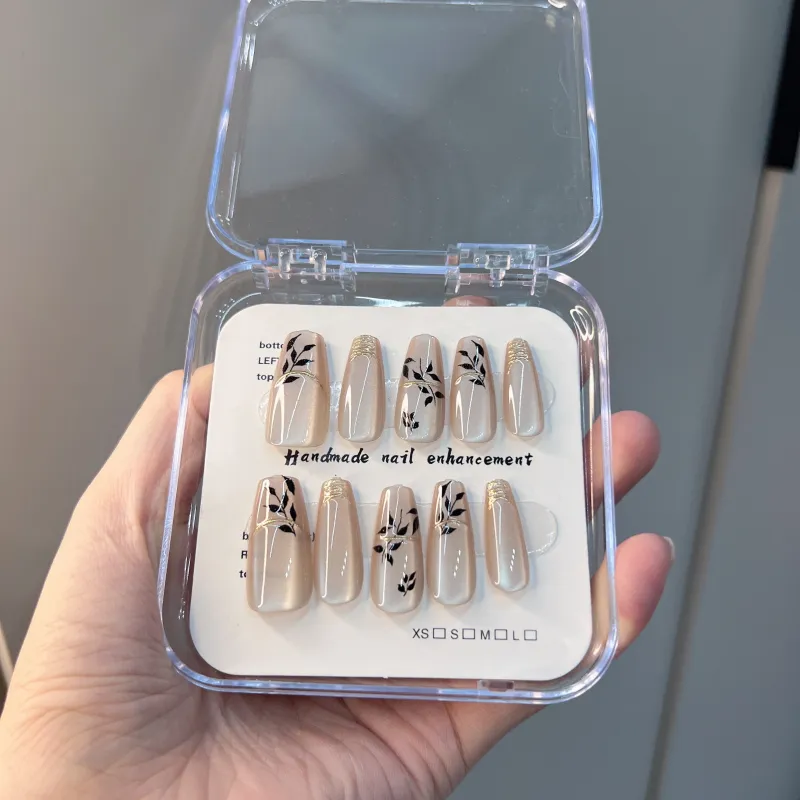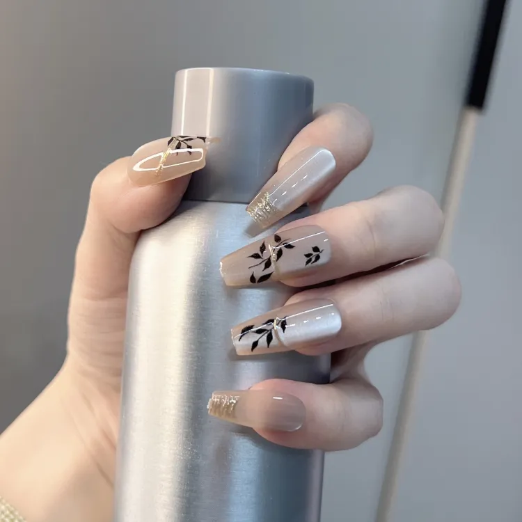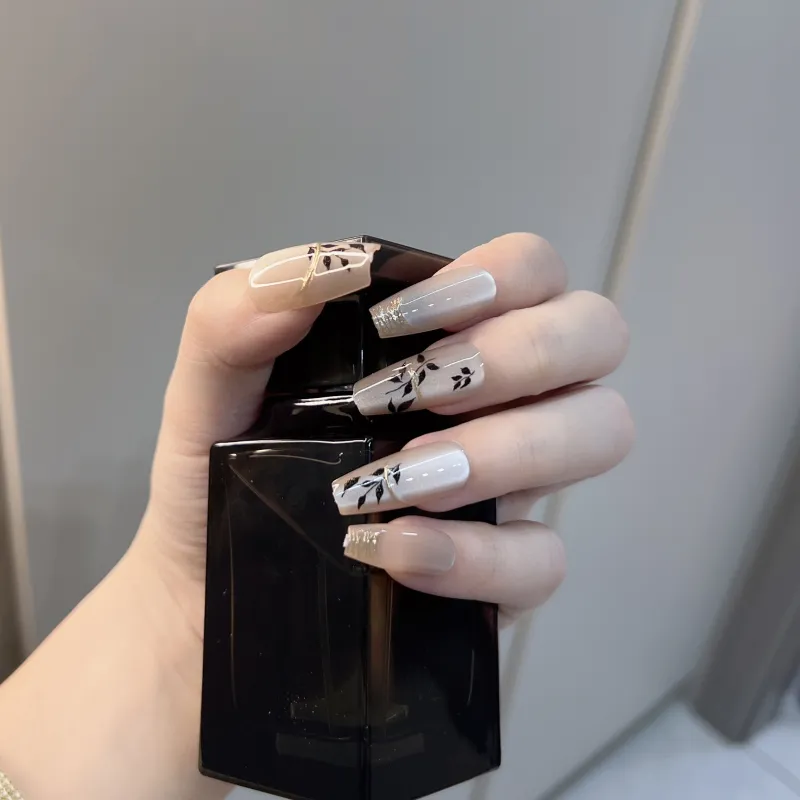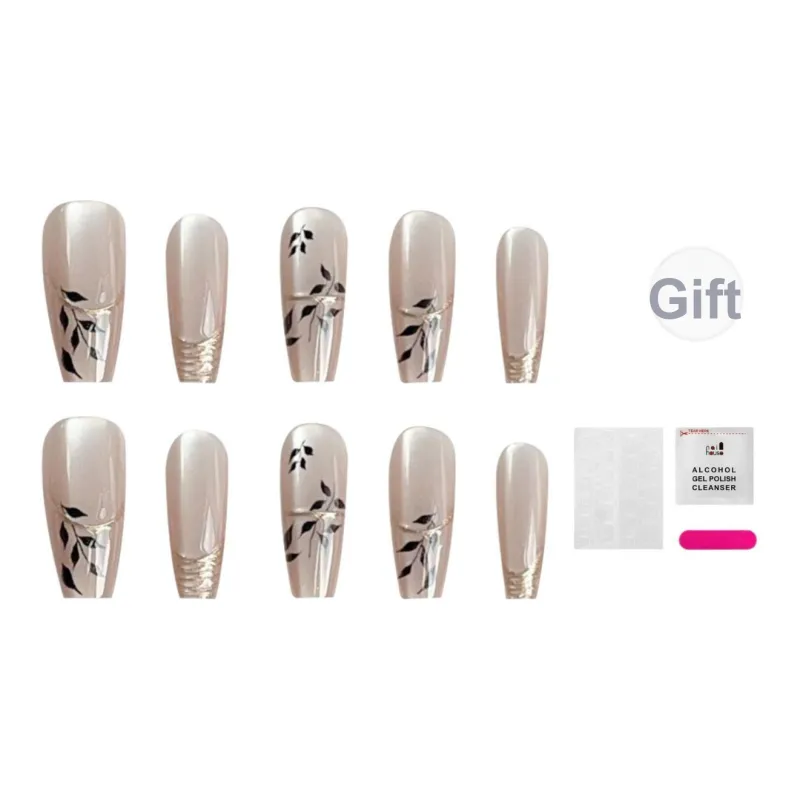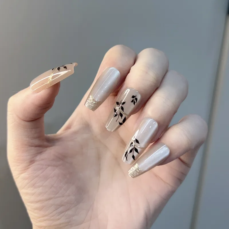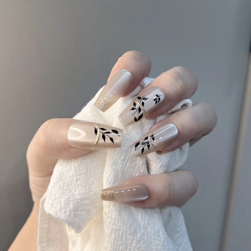 JIABITU Позолоченный Черный лист False Nail Трапециоидальный Длинный Однотонный Размытый Новый китайский стиль