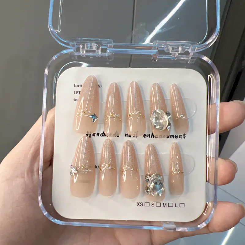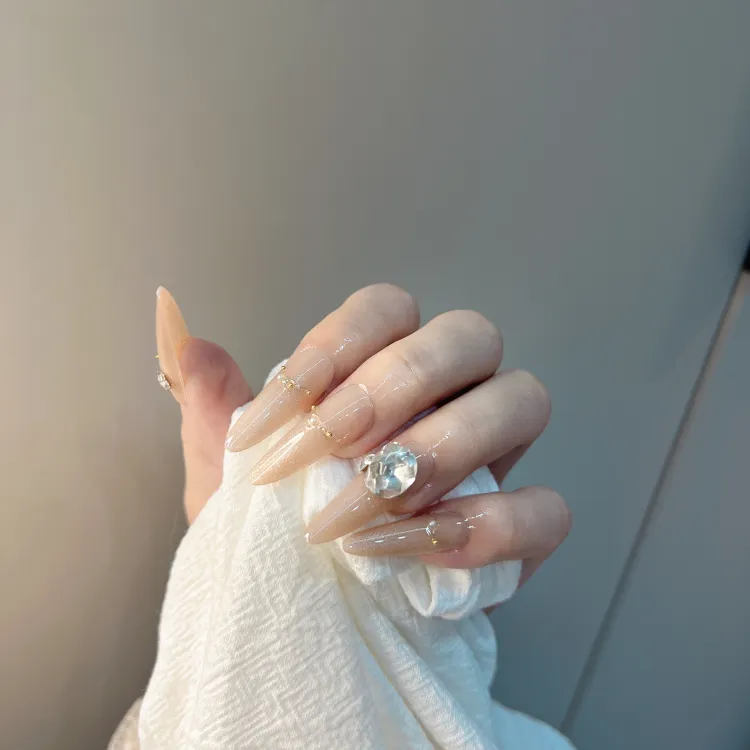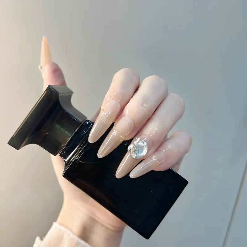 JIABITU Позолоченный Большой Ромб Сенсорный Ненадежда Искусственный Ногтик Длинный Заостренный Цвет Jump Смужка Флип 17мм