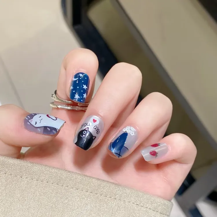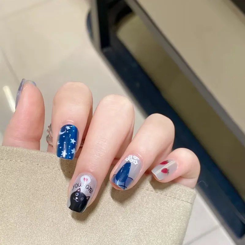 JIABITU Invincible Cute Kitten False Nail Short LADDER Solid Color Gradient New Chinese Style JIABITU Invincible Милый Котенок False Nail Короткий LADDER Однотонный Градиентный Новый китайский стиль