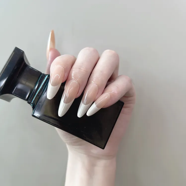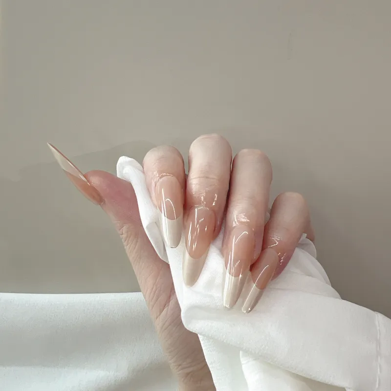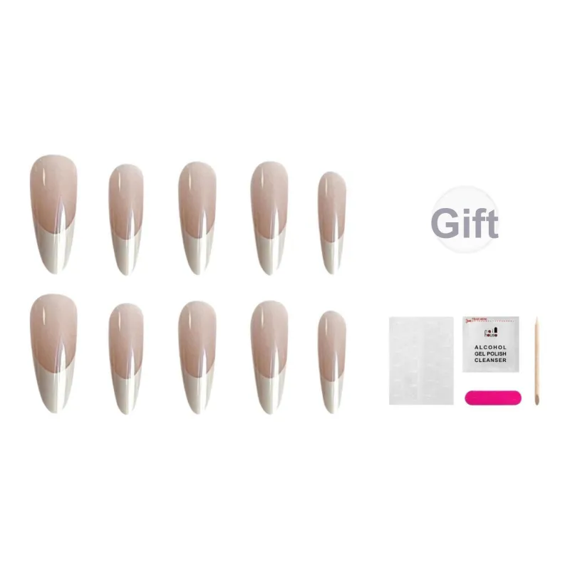 JIABITU Ногтевой патч Кремово-серый Французский стиль False Nail Tapered MID Длина (размер в длину) Цвет Jump Градиентный Однотонный 17 мм