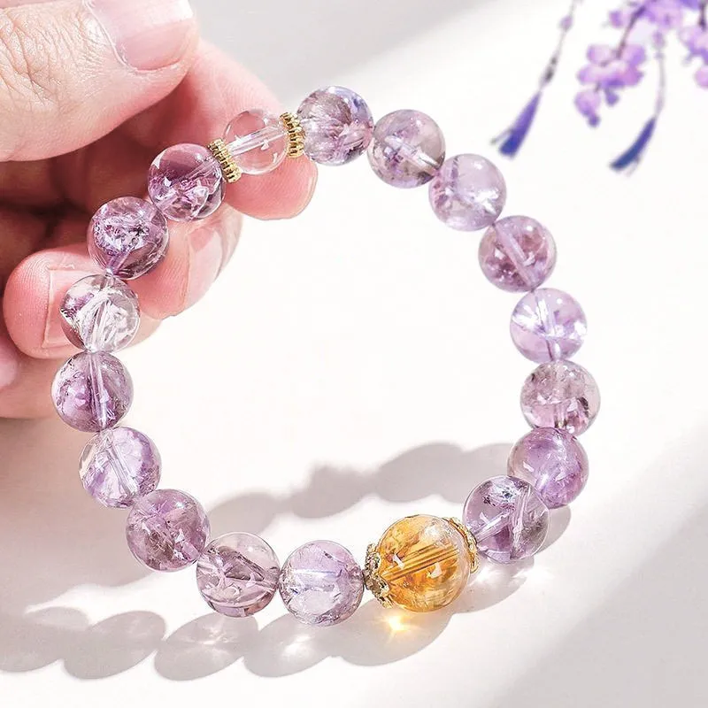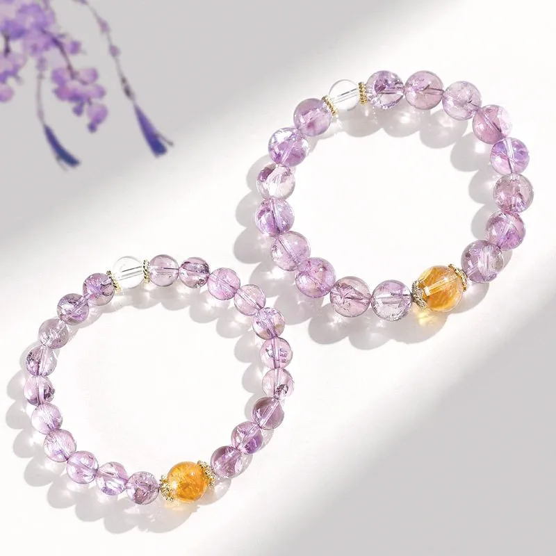 Стиль:Фиолетовый браслет с бусинами, размер 8 мм