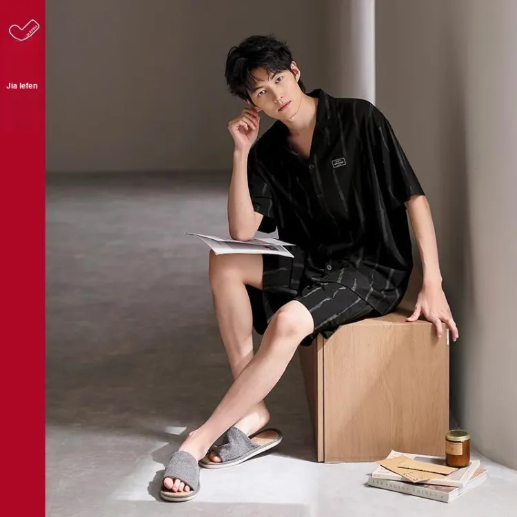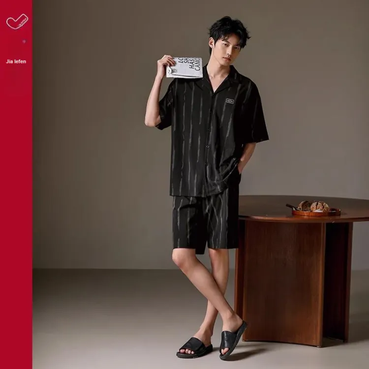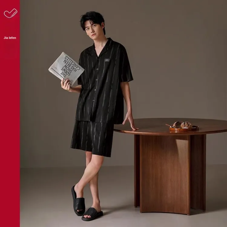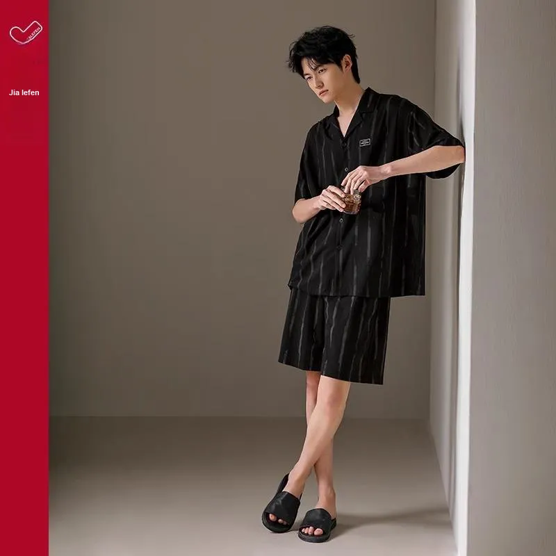 JIALEFEN Пижамный комплект мужской каменно-черный
