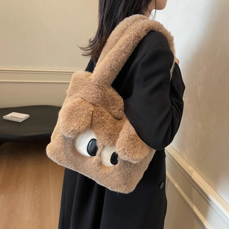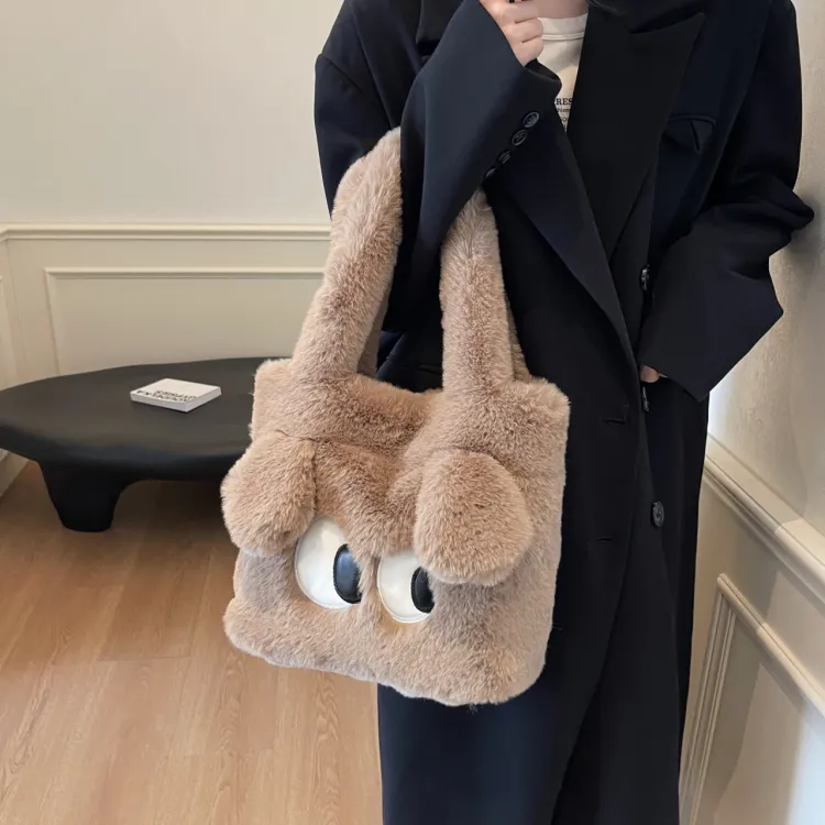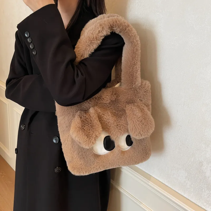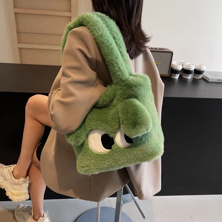 JIANGLIDA Плюшевая сумка через плечо женская зеленый хаки экрю