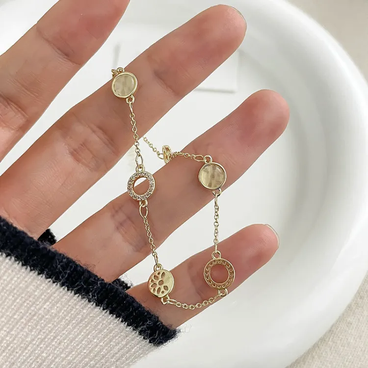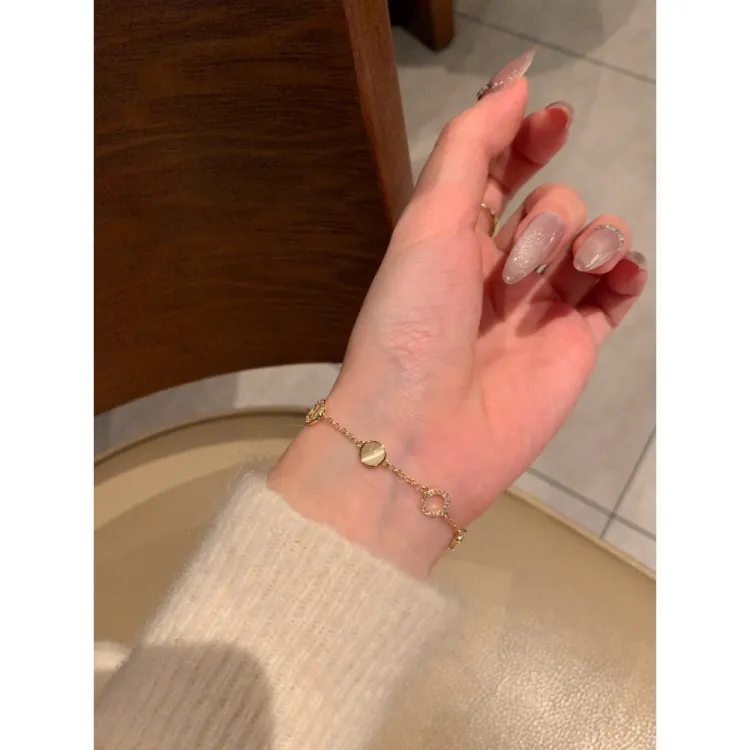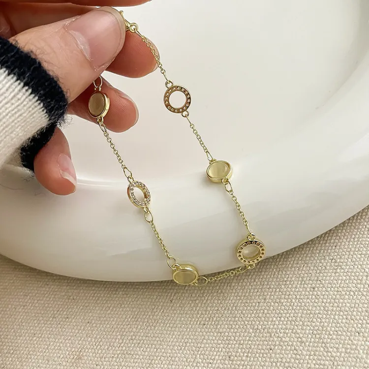 Золотой браслет с камнем "Кошачий глаз" из стекла