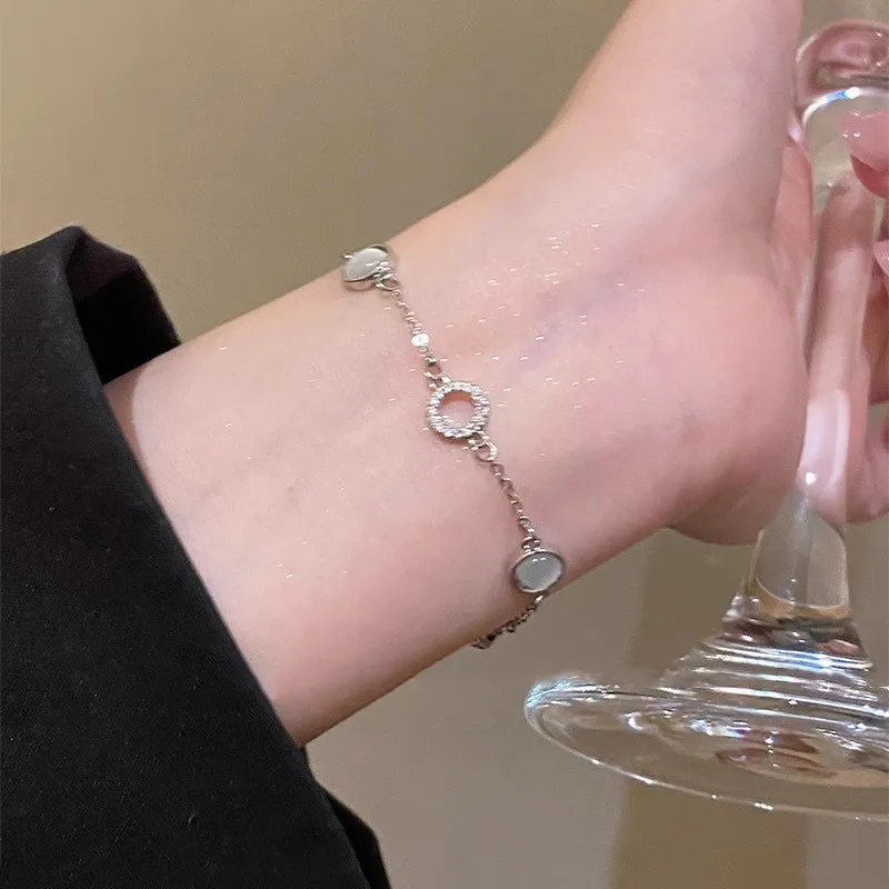 Стиль:Серебряный браслет с камнем "Кошачий глаз" из стекла