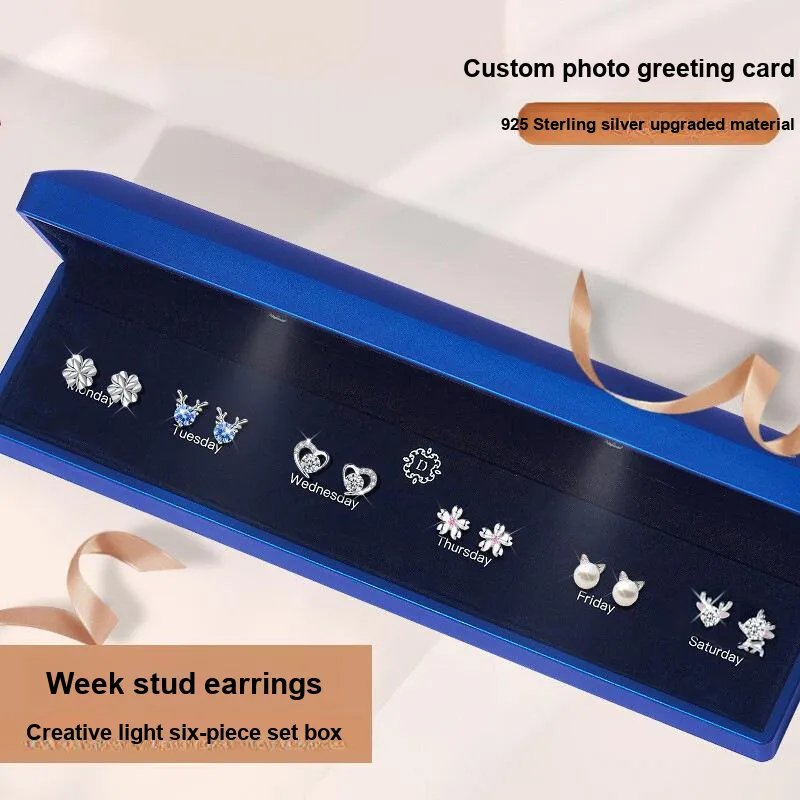 Серьги "Синий Ритм Starlight", 6 пар [Премиум-синяя коробка]