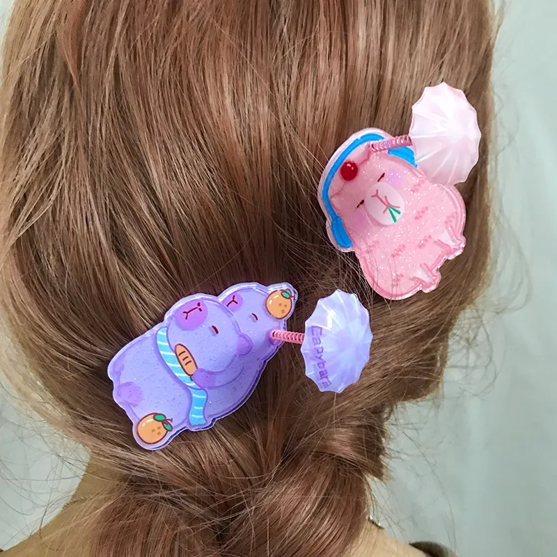 Стиль:Капибара Пружинная Заколка Заколка для волос 1 упаковка (Розовый)