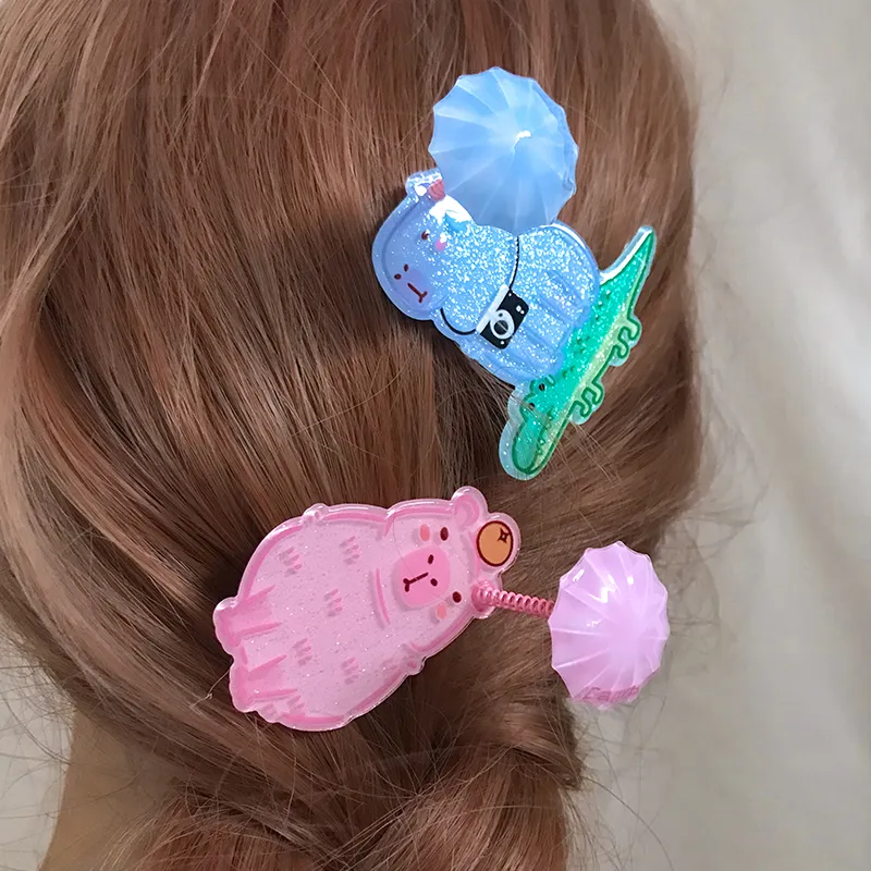 Капибара Весна Shake Заколка для волос 1 пара (синяя)