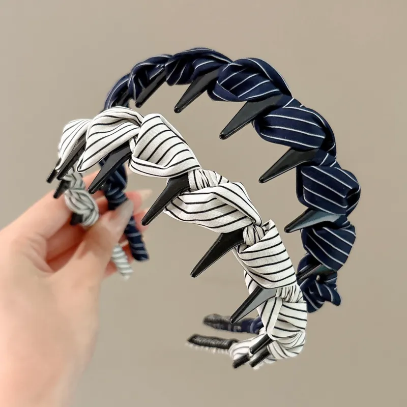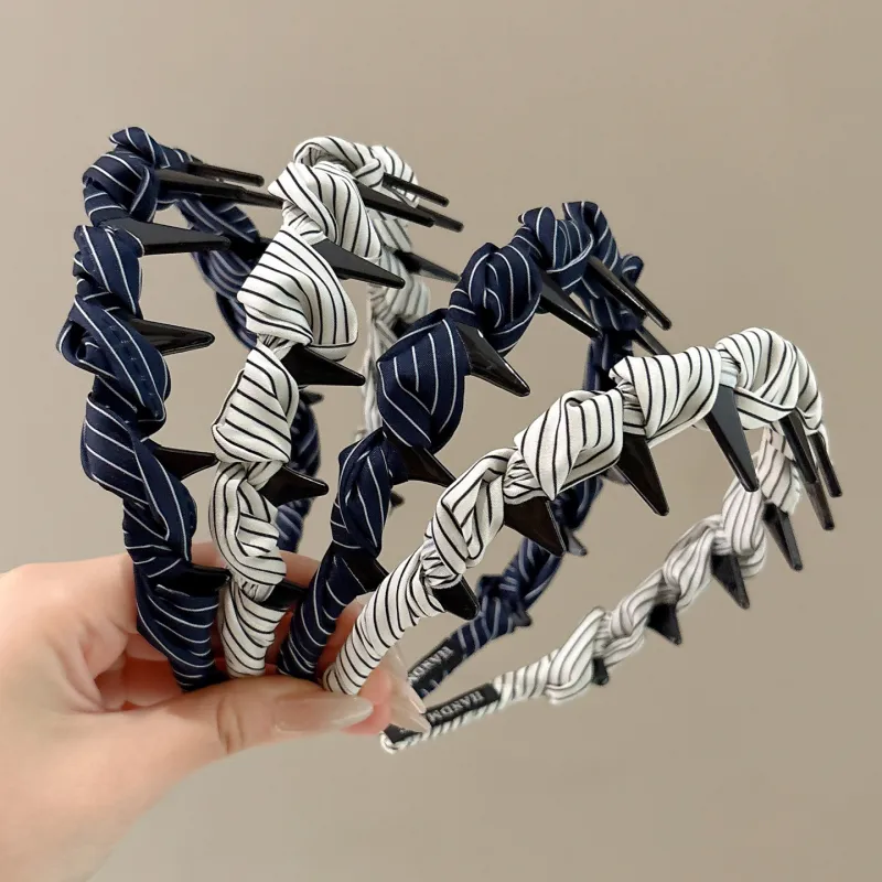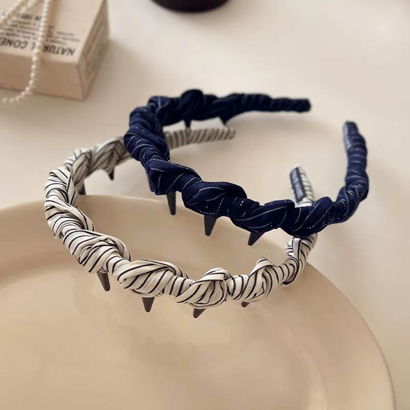 Французская ткань, обернутый, полосы, повязка на голову, темно-синий: 1 упаковка