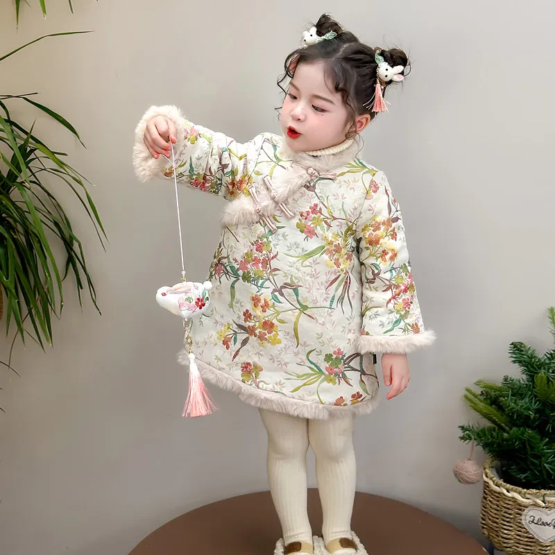 Jiao Ni Чонсам Бежево-абрикосовый для детей 3-7 лет