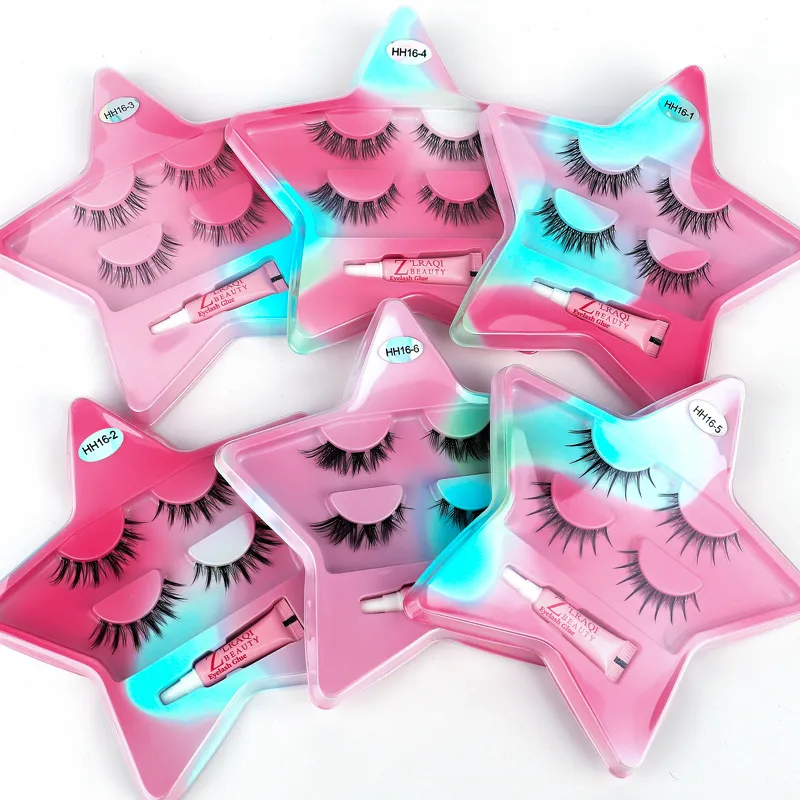 HH16-3 Звезды Клей-Бесплатно Набор накладных ресниц, 2 пары: 1 комплект