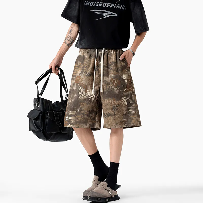 JIARONG Повседневные шорты Мужские Кофейные Змеиный принт