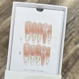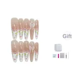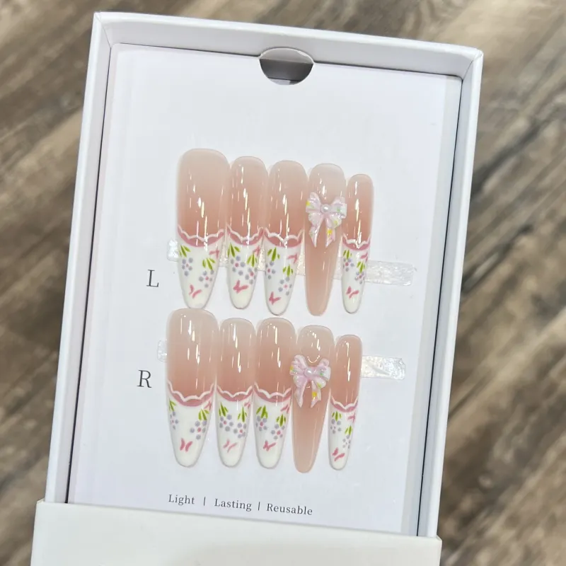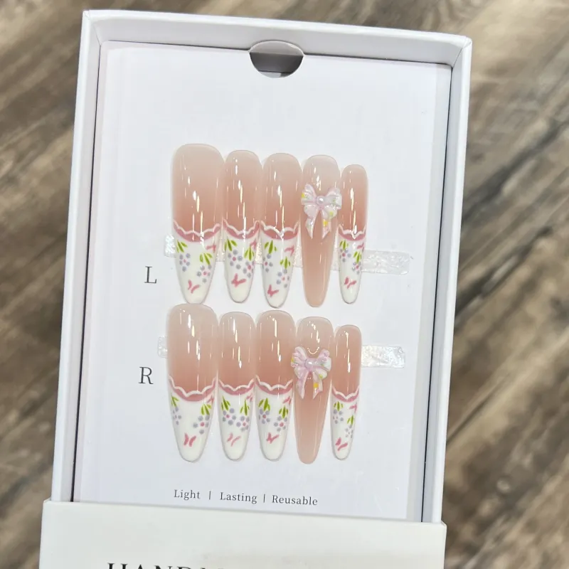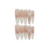 JIDUOMENG [Море цветов] False Nail Ручная работа Премиум Feel Универсальный HAND DRAWN Edge Французский Nail Art Длинный