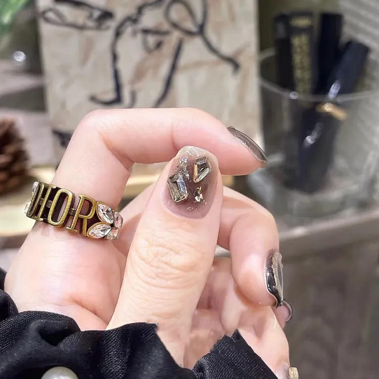 JIDUOMENG Ручная работа Nail Art Фальшивые ногти Стикер Готический Ins Вспышка Кристалл Шампанское Ромб