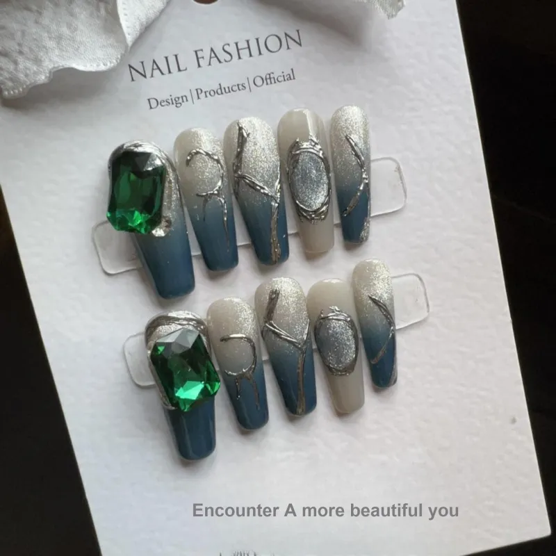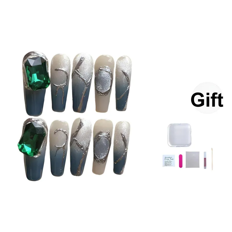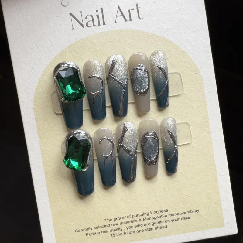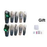 JIDUOMENG Французский Зеленый Драгоценный камень Кошачий глаз Хайлайтер Кисть False Nail Трапециоид Длинный