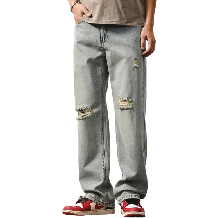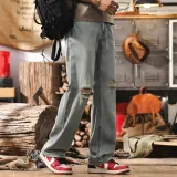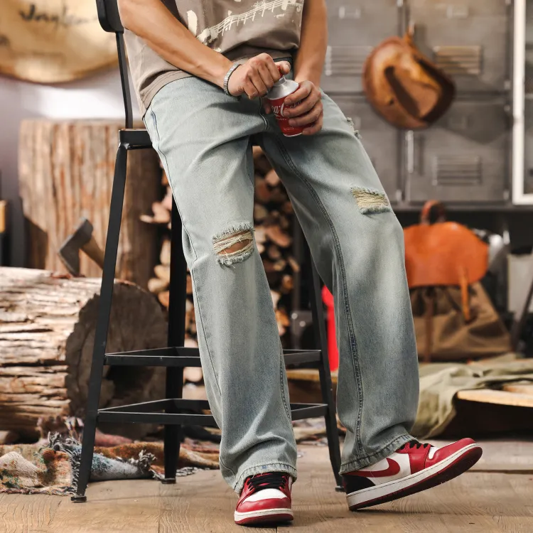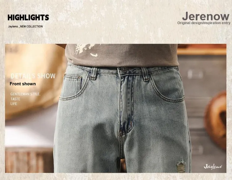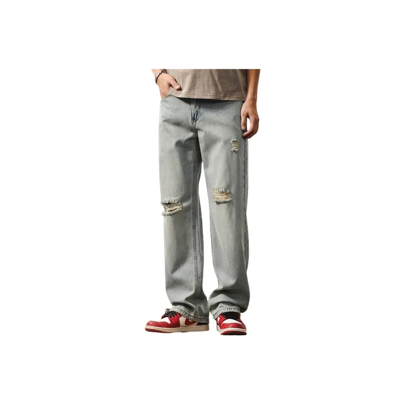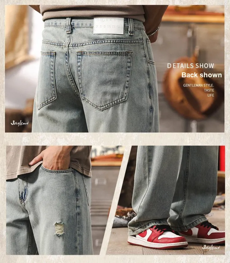 JIELEINUO Джинсы Мужские Светло-Синие