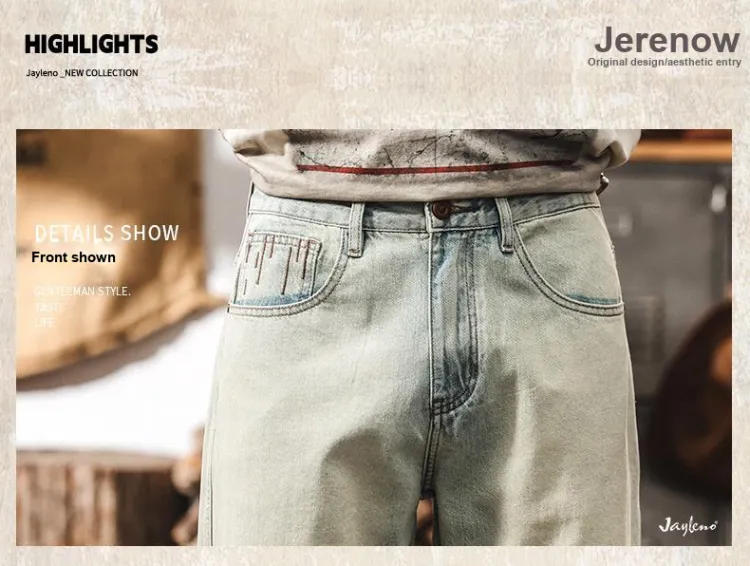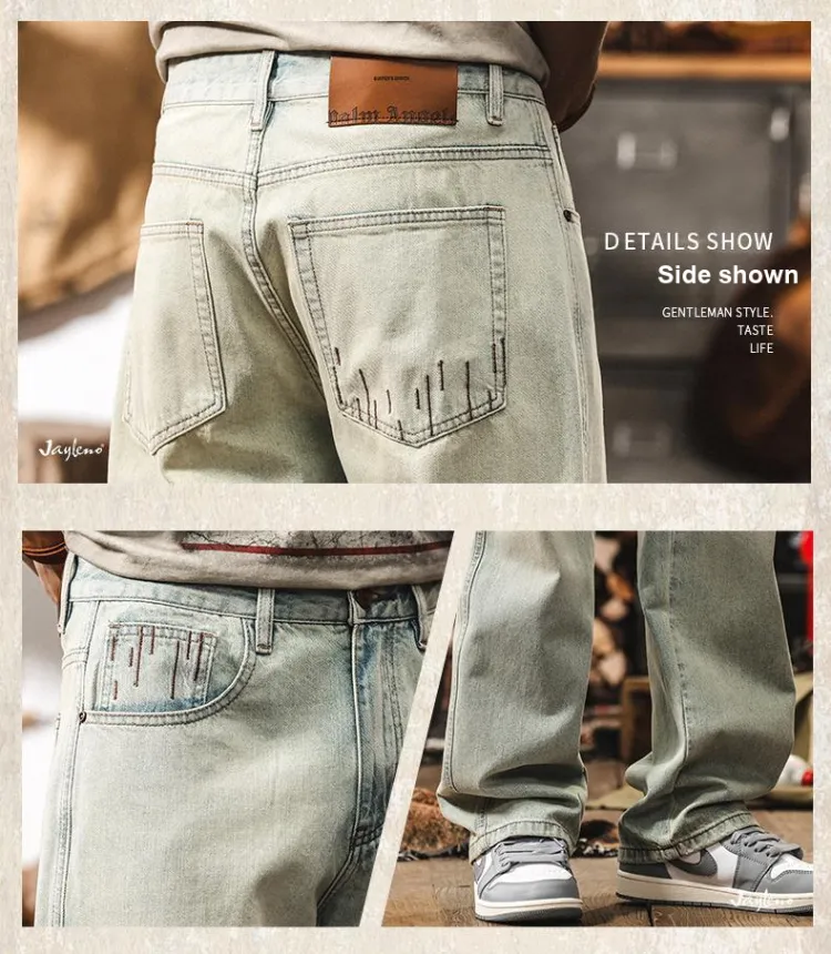 JIELEINUO Небесный синий Мужские Джинсы