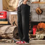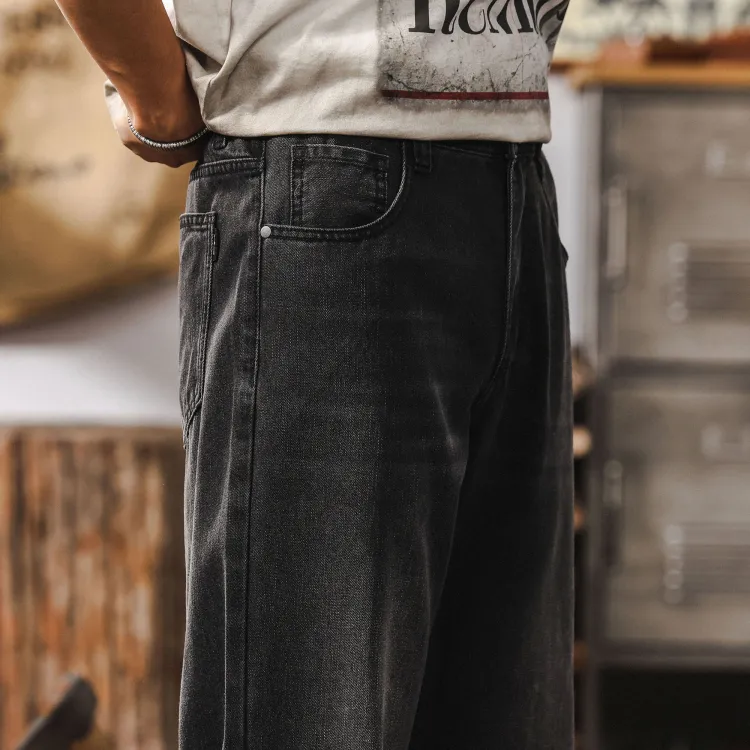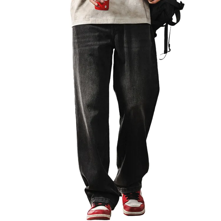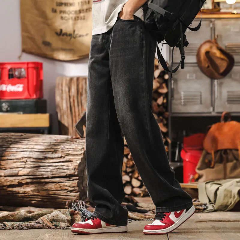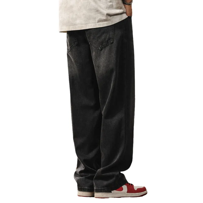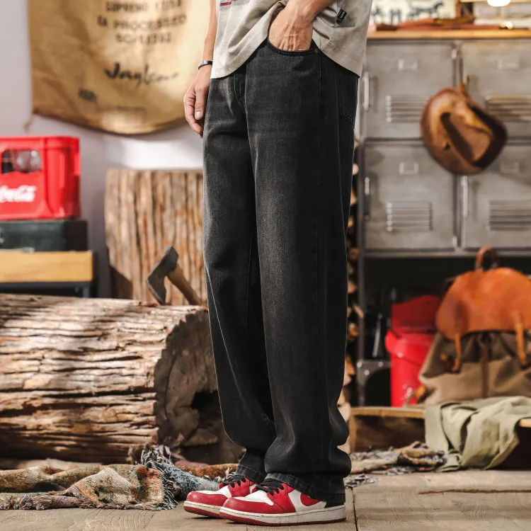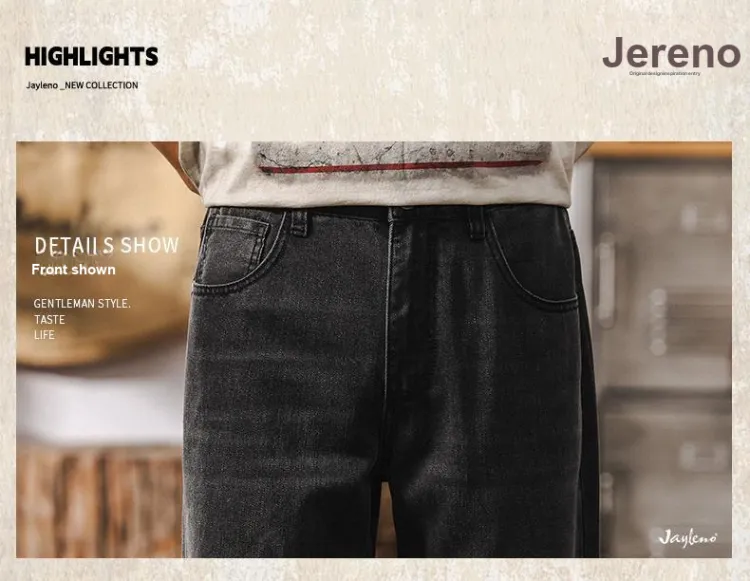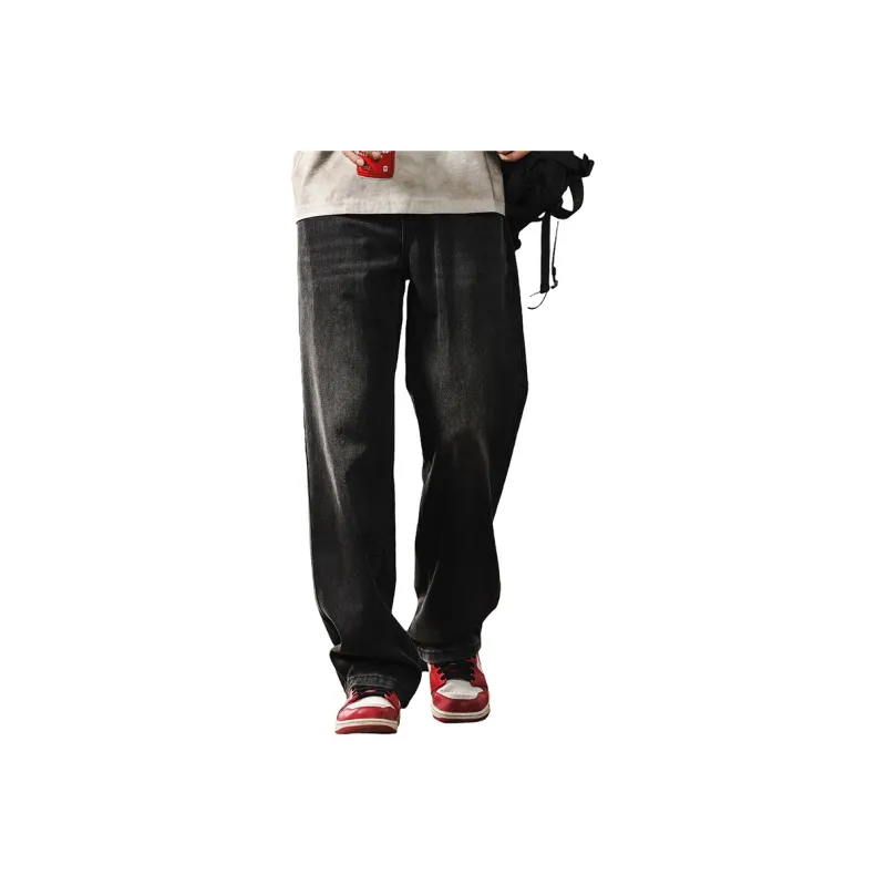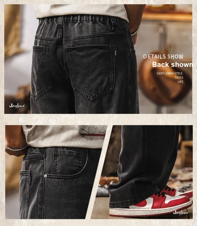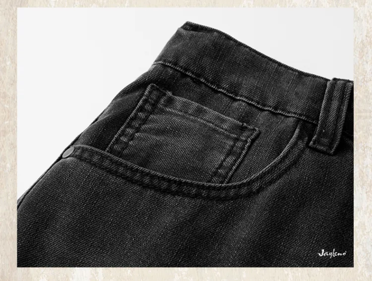 JIELEINUO Джинсы Мужские Выстиранные Черные