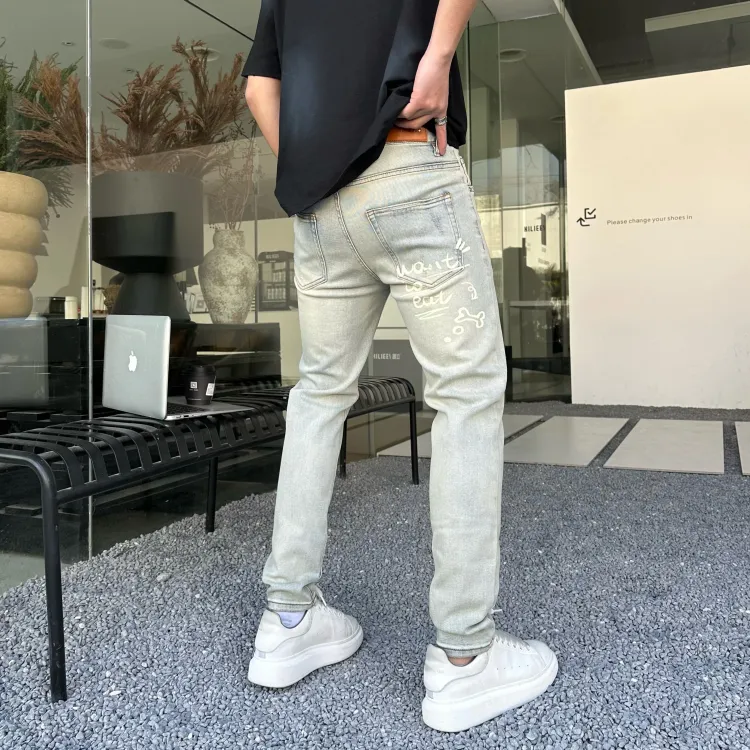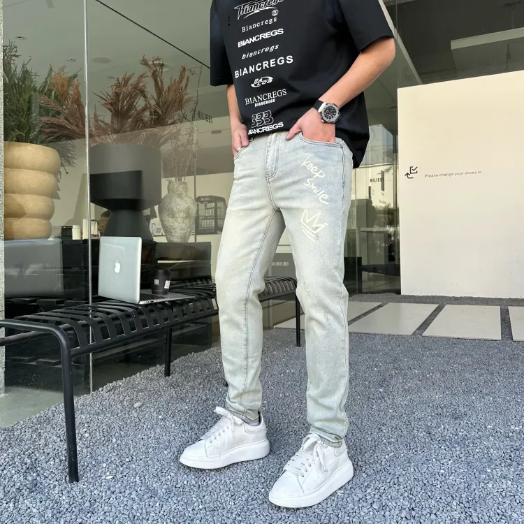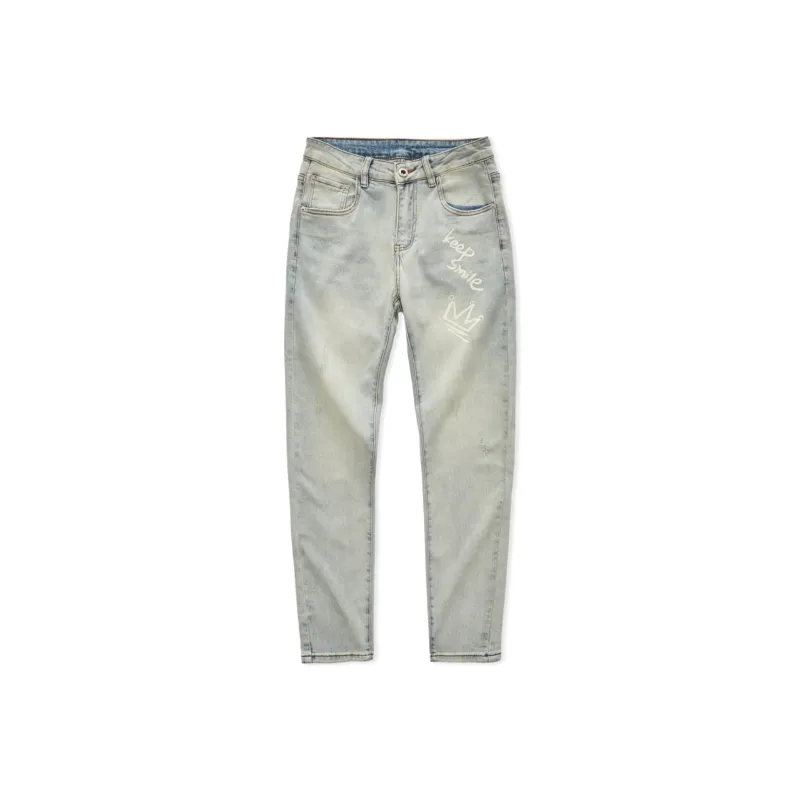 JIKENDI Винтажный Светло-Синий Мужские Джинсы