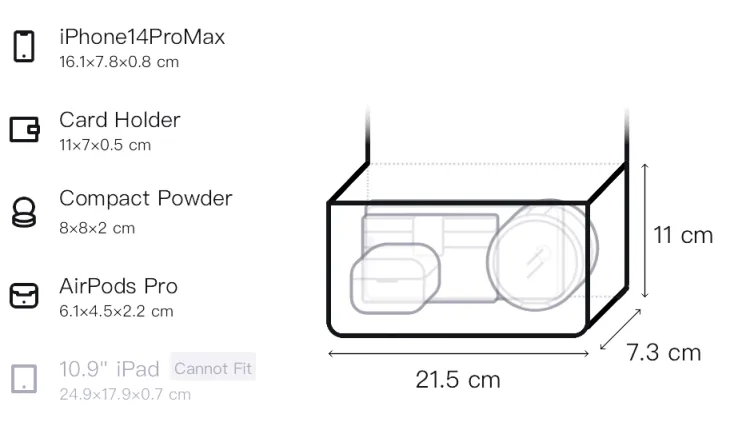 Д21,5*Ш7,3*В11см