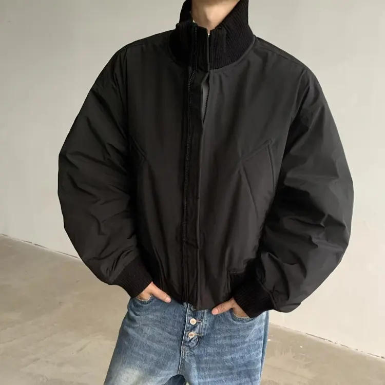 Чёрный утолщённый хлопковый пуховик