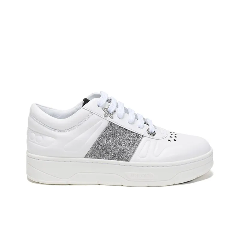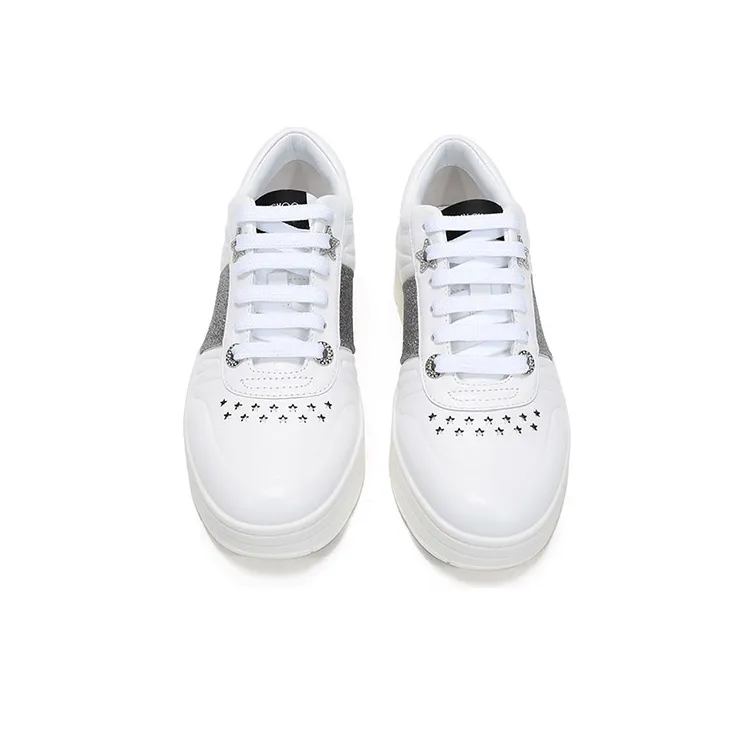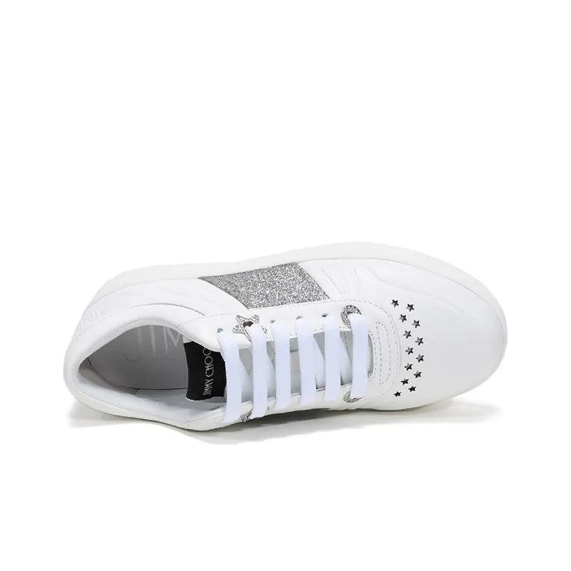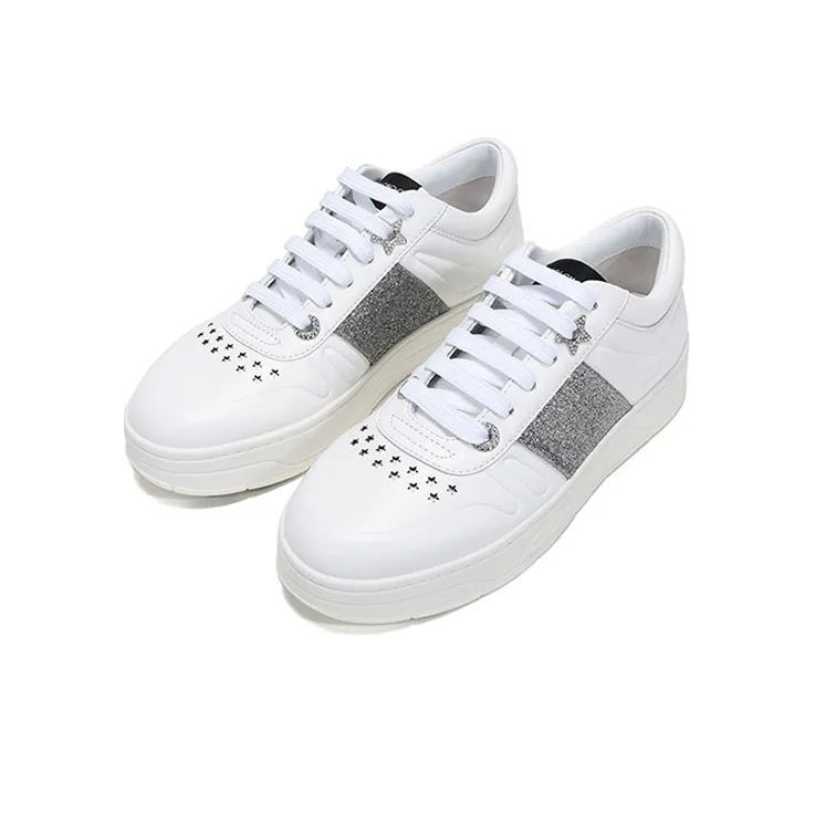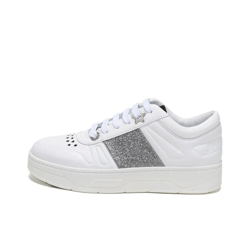 Jimmy Choo Гавайи Низкий Топ Стильные Скейтбординги Женские Белые Серебряные