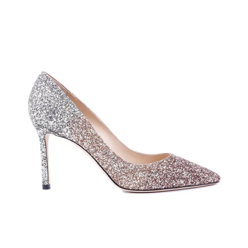 Jimmy Choo Romy 85 Zhou Yangjie Узкий каблук Высокие каблуки 8,5 см Женские Розовое золото Серебряное Градиентное