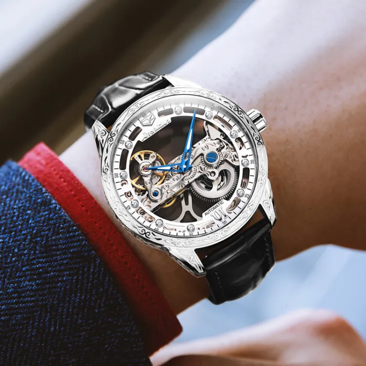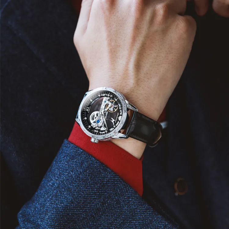 Jin Shi Dun Автоматический механический механизм Часы Мужские Часы с открытым механизмом