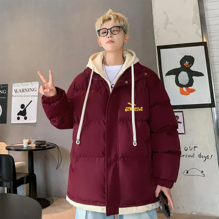 Бордовый хлопковый пуховик