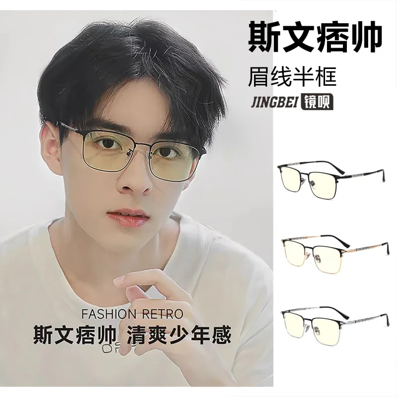Чистый титан, черный золото [элегантный], мягкий, светлый, маленький, желтые линзы