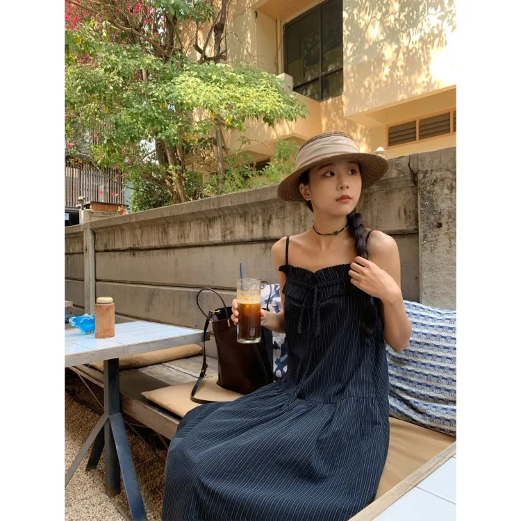 JINGBUTIAN Юбка-платье Женское Синие Полосы