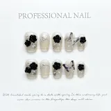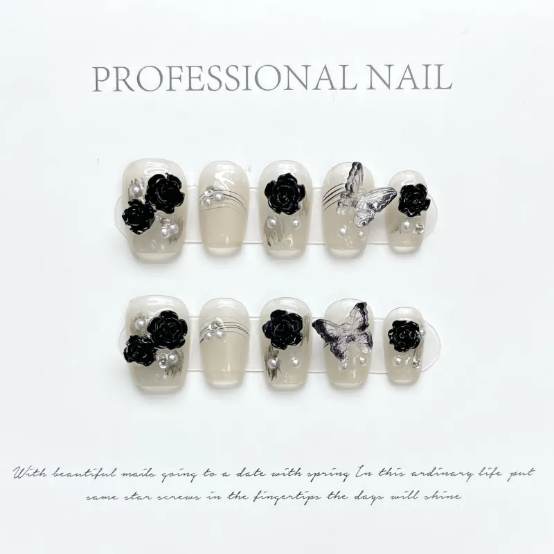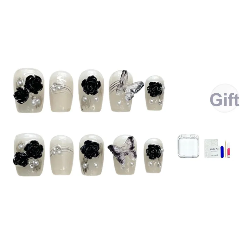 JINGCHANXUE Черный Камелия Осветляющий False Nail Короткий Квадрат Премиум Feel Телесный 12мм