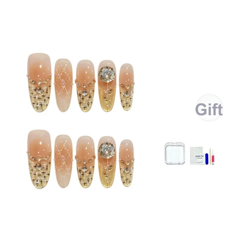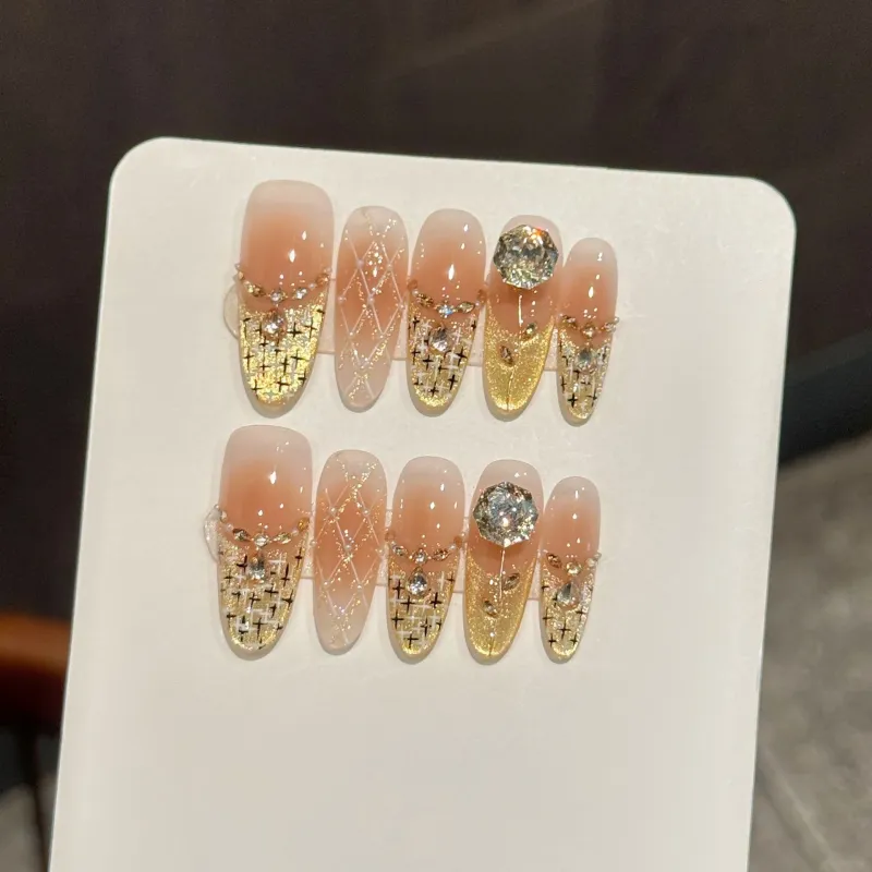 JINGCHANXUE [Французский Chanson] Аргайл Сверкающий страз False Nail Овал Coquette Градиентный Кошачий глаз 16mm