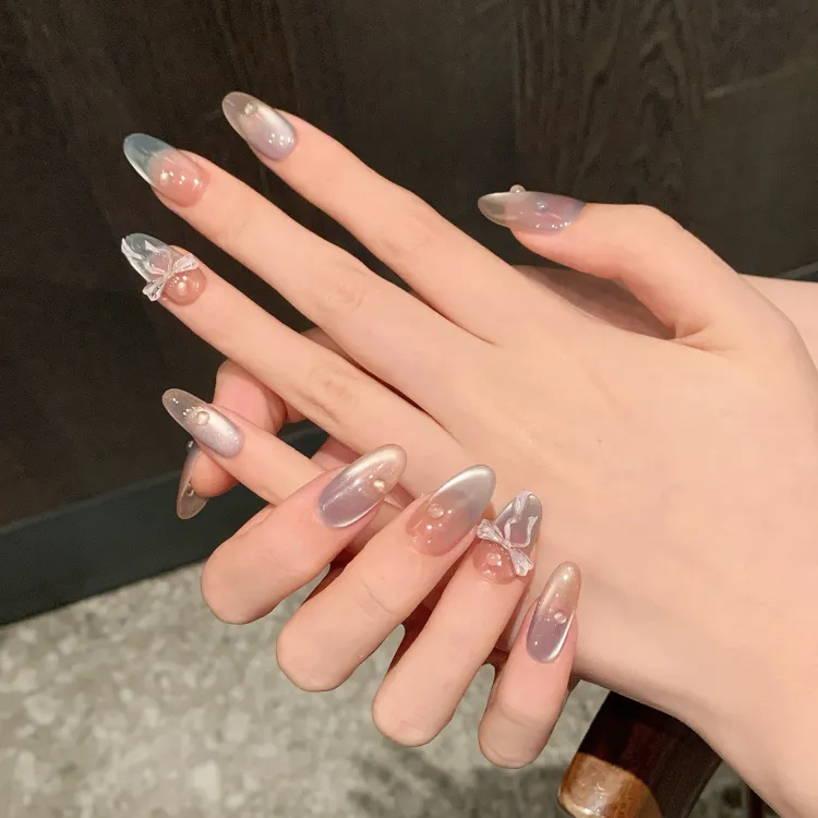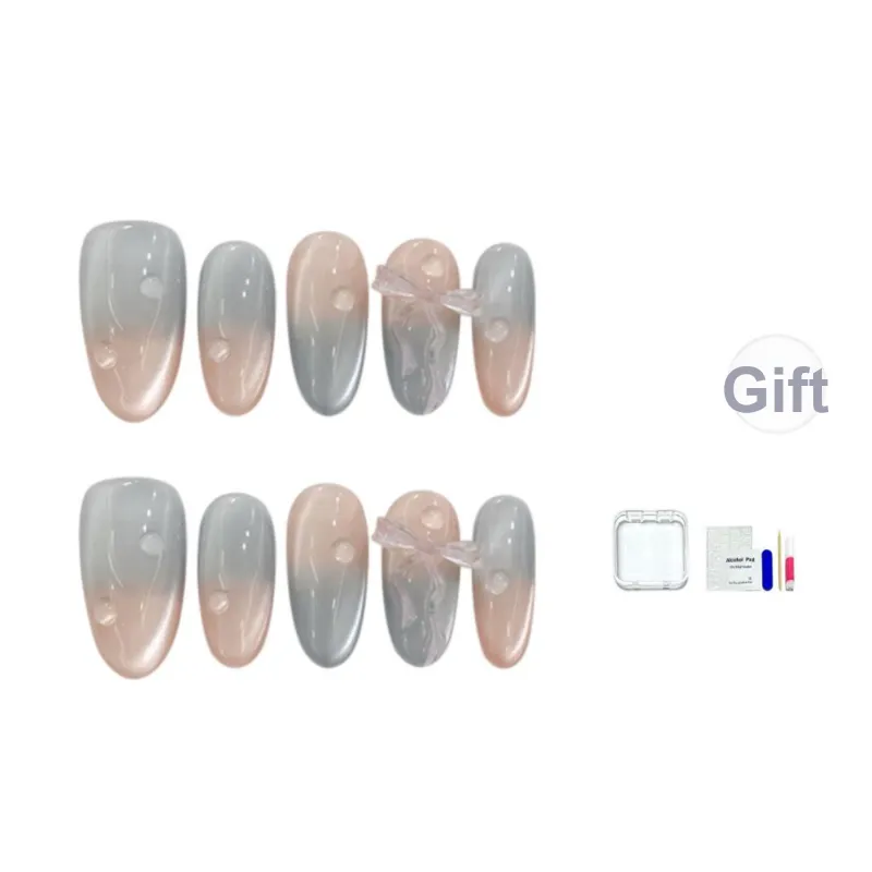 JINGCHANXUE Мята Сода Тисненый Бант False Nail Овал Освежающий Градиентный Кошачий глаз 14mm