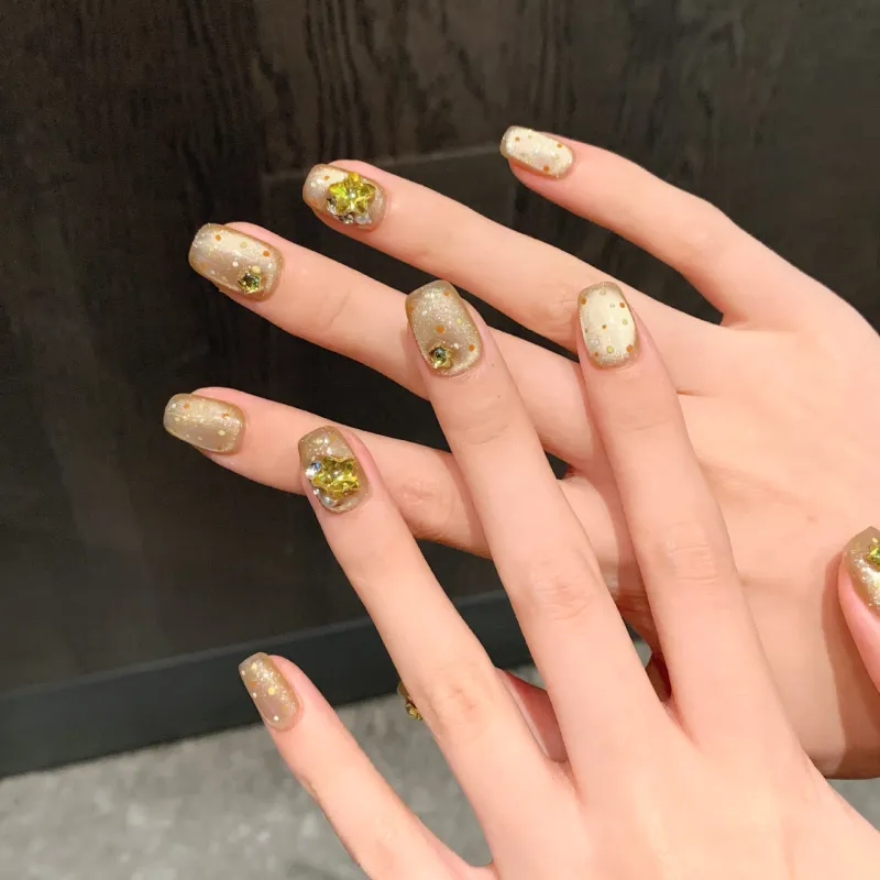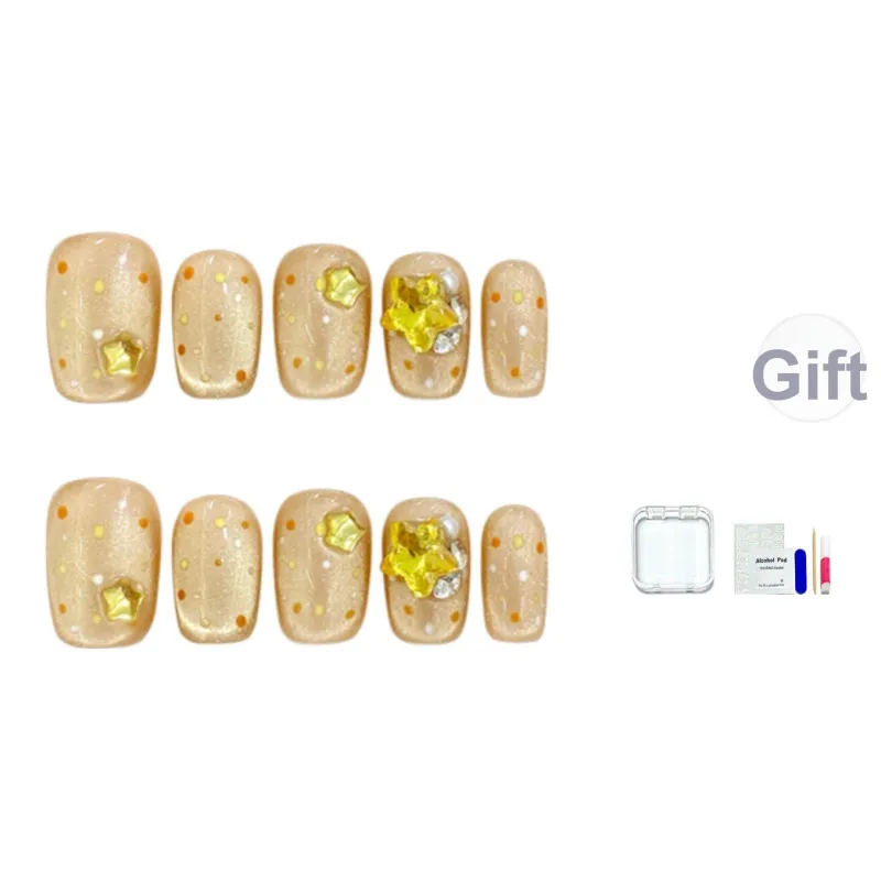 JINGCHANXUE Апельсин Pulp Апельсин Handcrafted False Nail Короткий Квадрат And Круглый Кожа Flattering Однотонный Кошачий глаз 12mm
